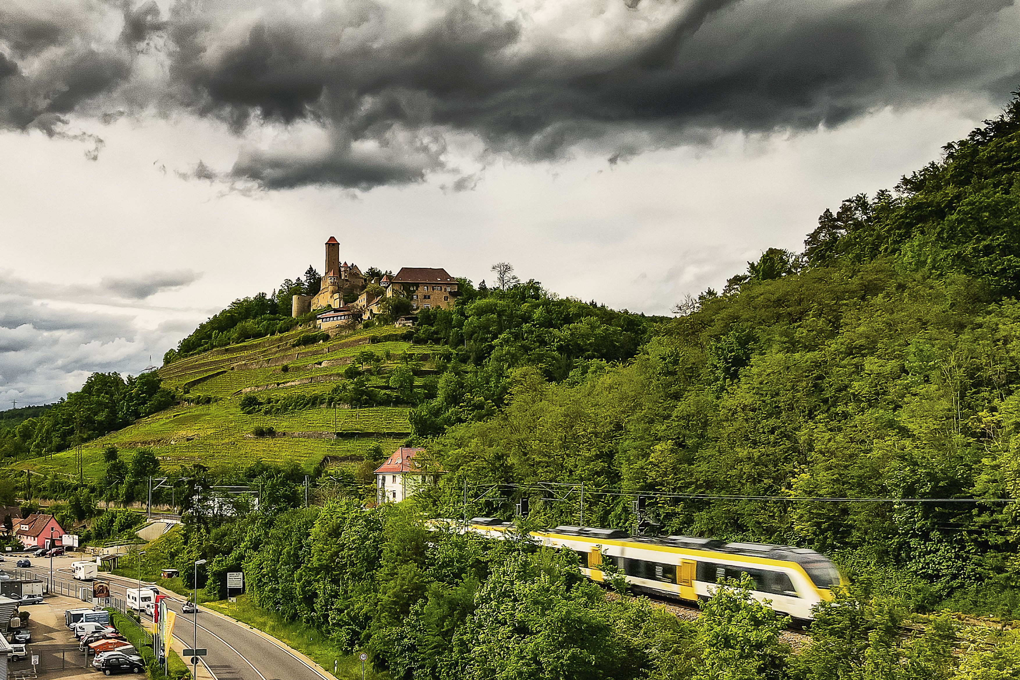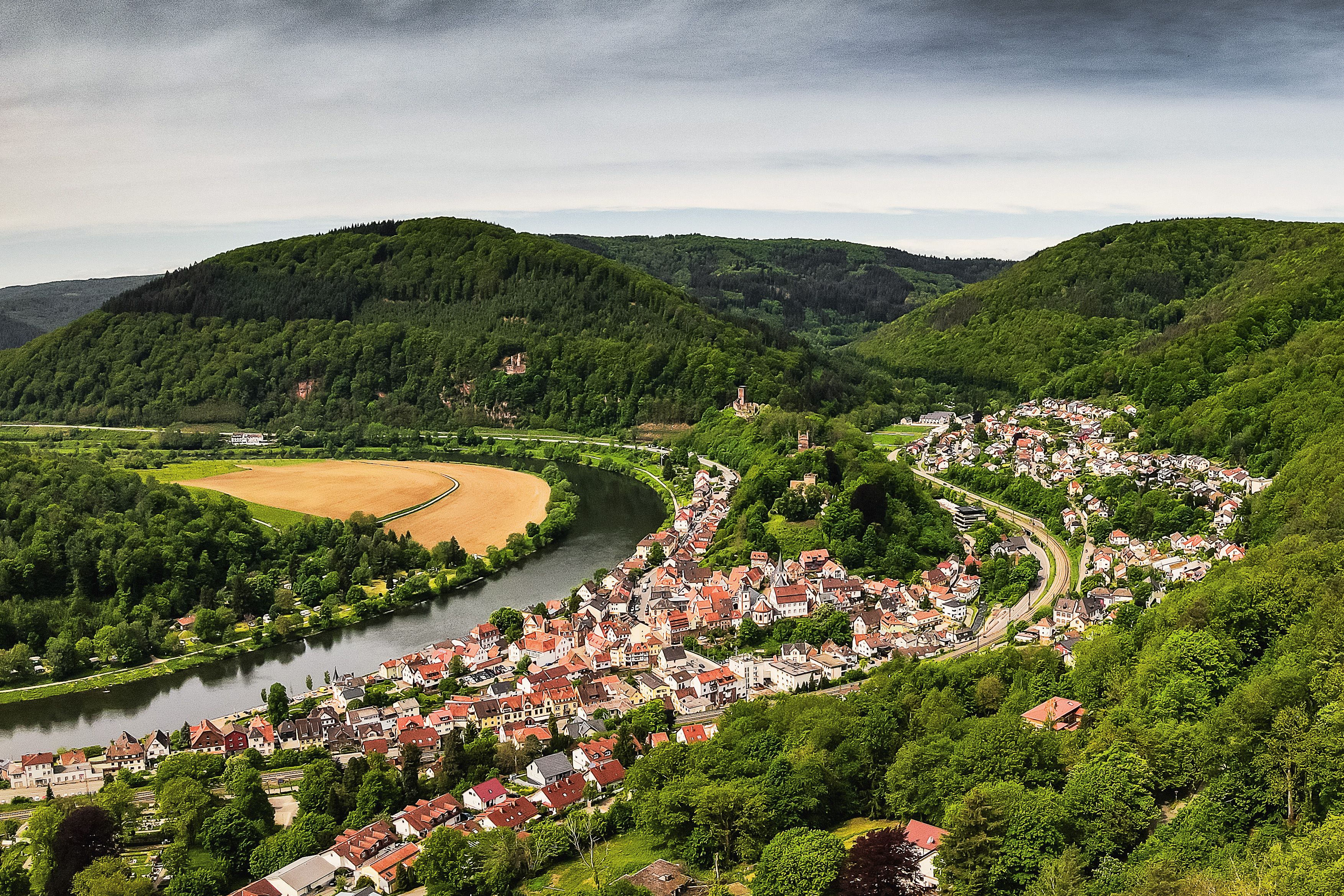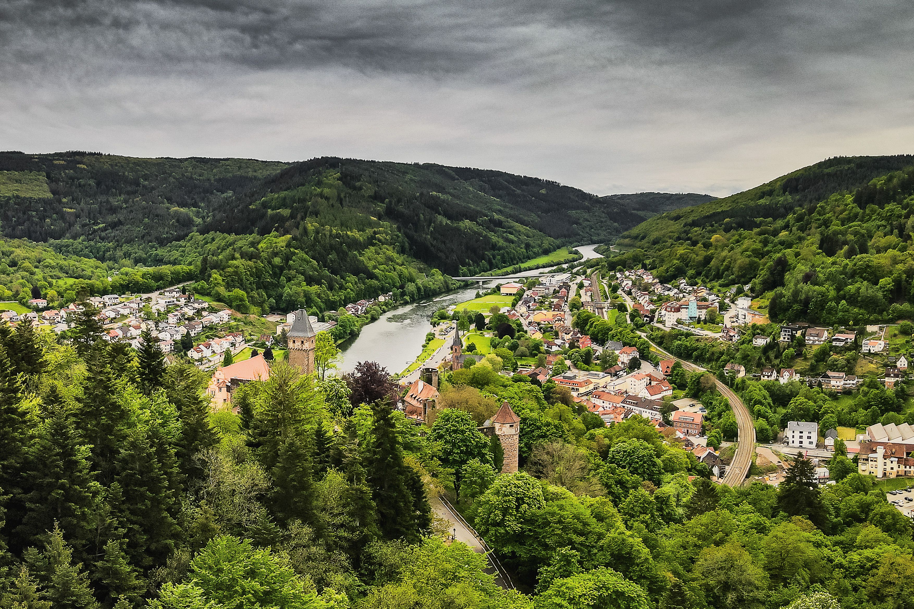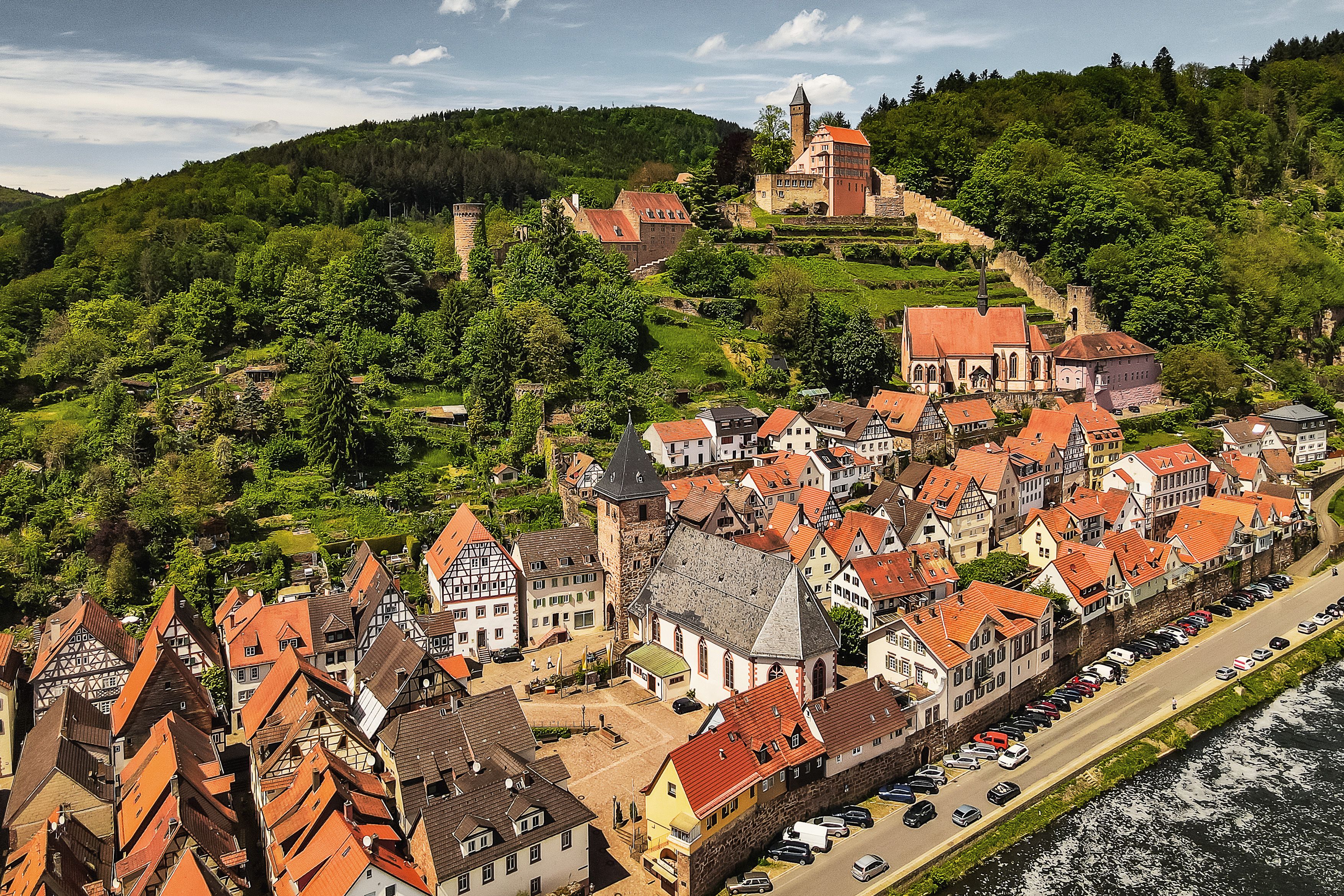1.) Die Burgruine Schwalbennest, eigentlich Schadeck, ist die Ruine einer mittelalterlichen Hangburg in Felslage auf 190 Metern. Sie ist die jüngste der vier Neckarsteinacher Burgen. Anders als die drei anderen Burgen liegt die Burgruine Schwalbennest (Schadeck) nicht auf der Bergzunge, sondern neckarabwärts an einem steil abfallenden Bergmassiv.