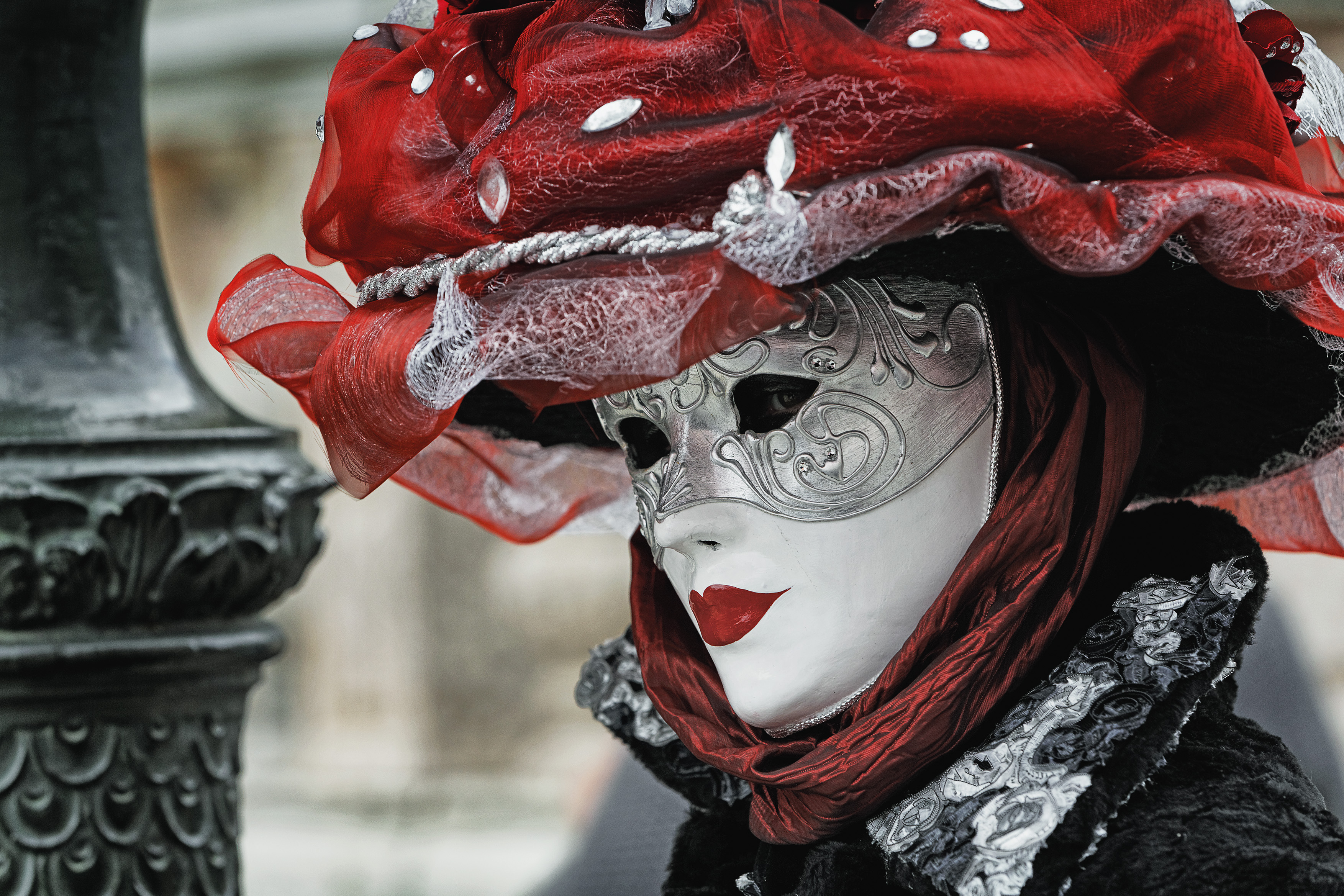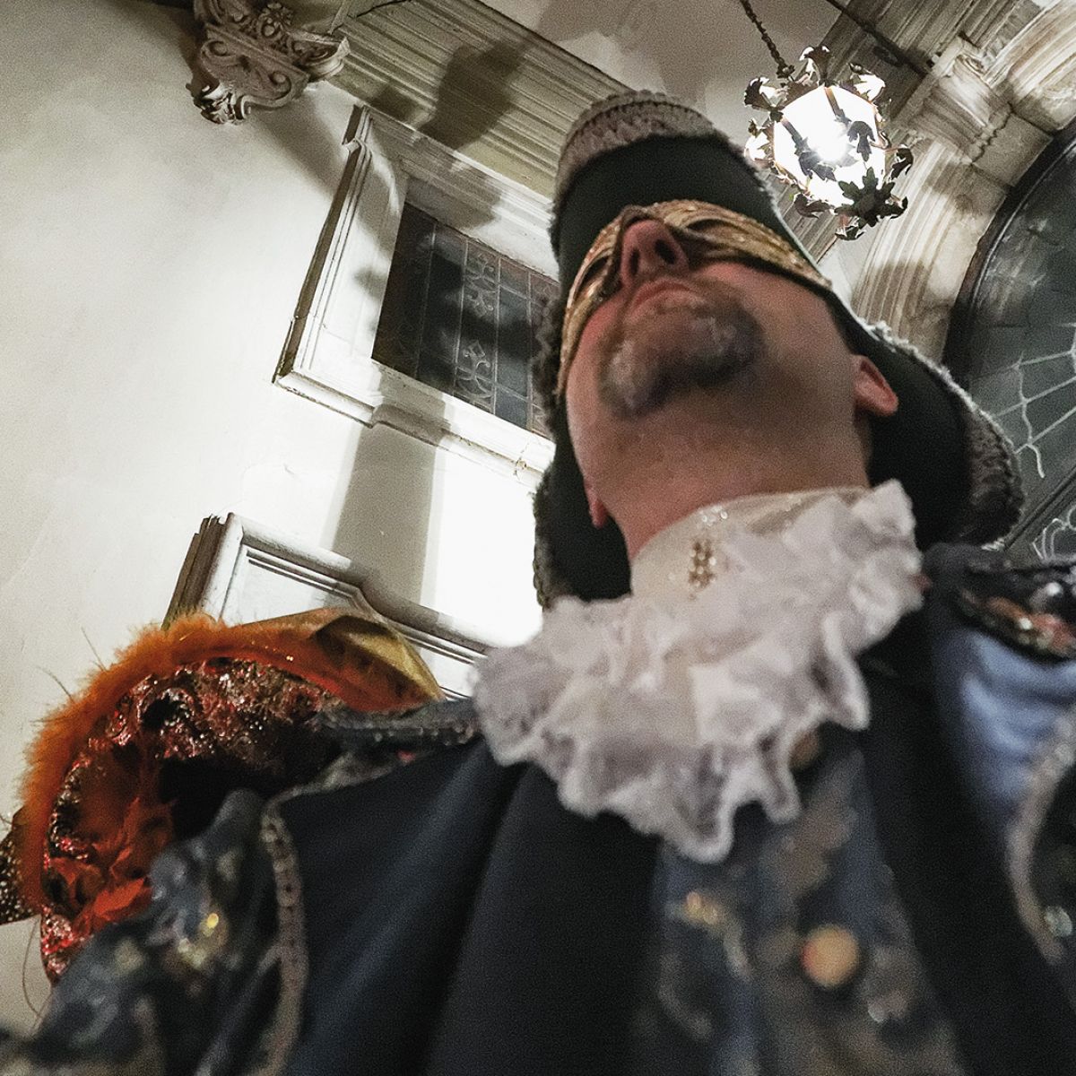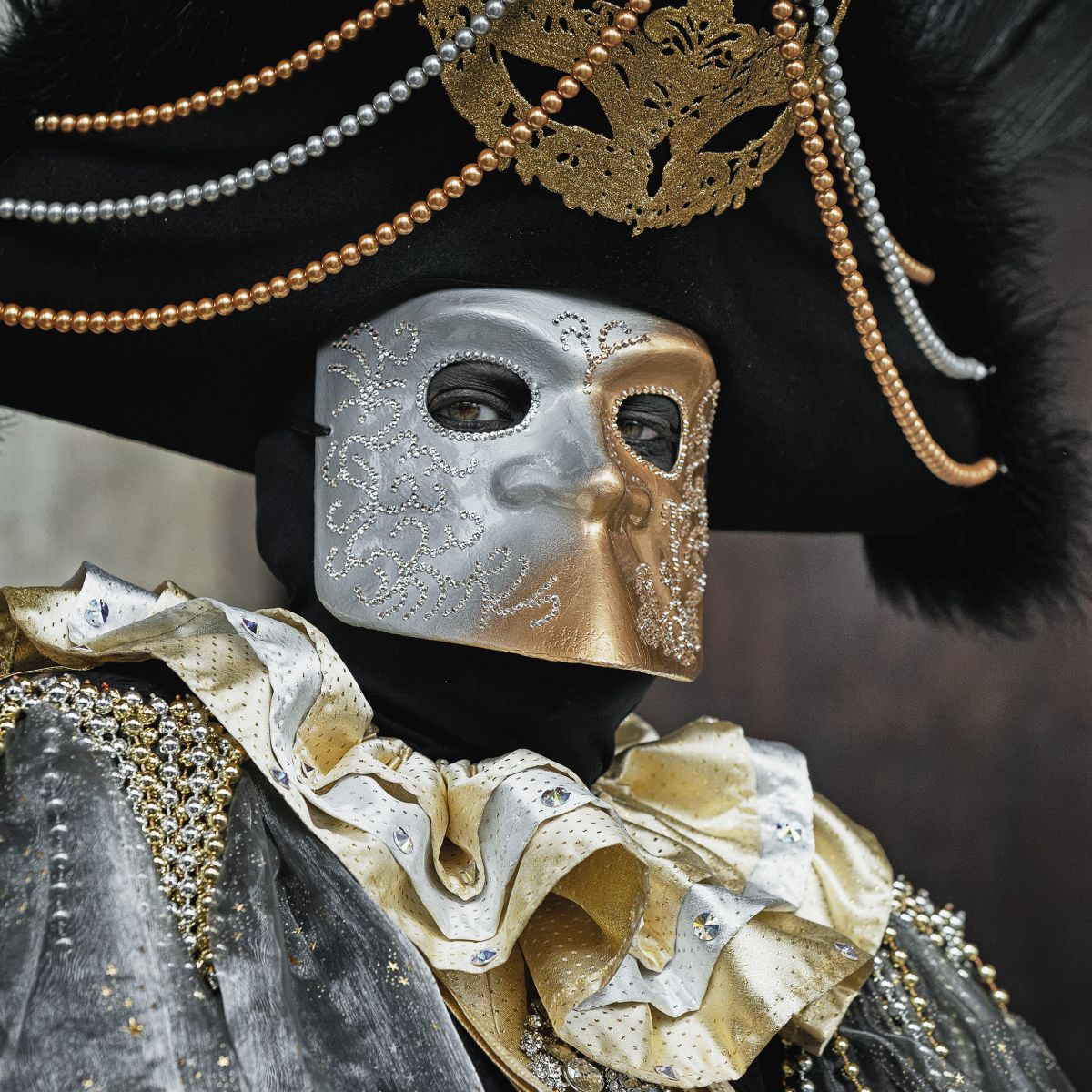 Gestärkt machen wir uns auf den Weg und haben nun genügend Zeit, die Stadt weiter zu erkunden und uns auf die Suche nach schönen Motiven zu machen. Viele Kostümträger lassen sich hier gerne vor antik-maroder Kulisse ablichten. Die meisten Kostüme haben aber kaum etwas mit der Historie der Stadt oder der Tradition des Karnevals in Venedig zu tun, sondern sind sehr fantasievoll und einfach zauberhaft. Und nicht gerade günstig auszuleihen. Meist gibt es Prozente auf den Mietpreis, wenn man eine Stunde damit durch die Stadt flaniert und die Ware für den optischen Genuss vermarktet. Wir suchen noch nebenbei die Strumpfhosen für die Herren und werden nördlich des Markusplatz fündig, in eben einem dieser Läden, die ein Rundum-Sorglos-Paket verleihen.