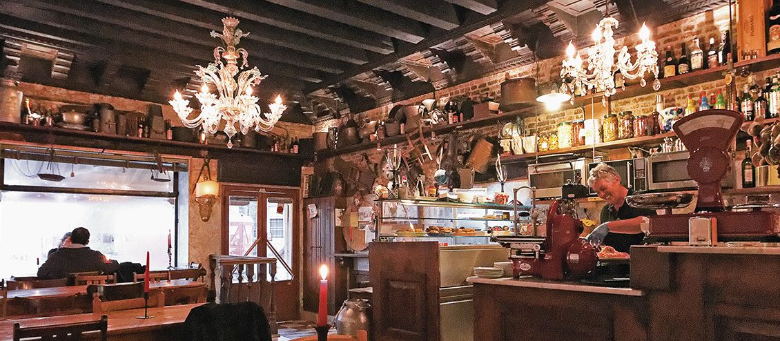 Inzwischen schüttet es in Strömen und auf den Campos sammelt sich das Wasser teilweise schon fußhoch und wir beschließen, das Wetter abzuwarten und flüchten am Campo Santa Margherita in die Osteria Alla Bifora Venezia, die wir gerade noch trocken Fußes erreichen können. Eine kleine Weinkneipe, die sich ganz kleinen, kalten Vorspeisen verschrieben hat, im Stile venezianischer Tapas.