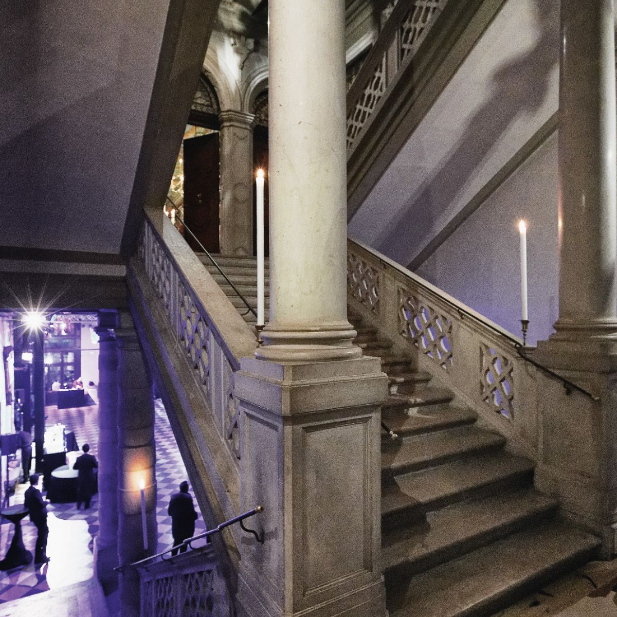 Wir werden durch ein fantastisches Menü geführt und sind nun gestärkt für die Party in der Eingangshalle, die wir zu Beginn des Abends betreten hatten.