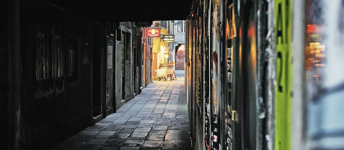 Wir stören uns anfangs auch nicht an dem kalten, abweisenden Wetter, sondern freuen uns über alle Gelegenheiten, uns bei einem Kaffee oder einer heißen Schokolade wieder aufzuwärmen. Bis der Wasserpegel steigt und die Gassen und Plätze sich langsam mit Wasser füllen. Bald sind die Schuhe nass, die Füße kalt und die Stimmung so trist wie das Wetter.