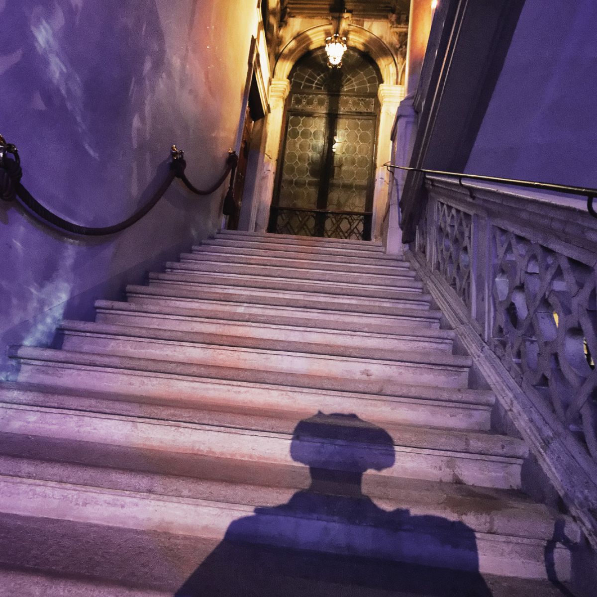 Es regnet in Strömen und wir können die Silhouette der Stadt nur verschwommen wahrnehmen. Unser Taxi legt am 'Palazzo Pisani Moretta' an und wir huschen über die mit Samtteppich ausgekleideten Pontons durch eines der zwei Portale, die in die schwarz-weiß geflieste Empfangshalle des Palazzos hinein führen.