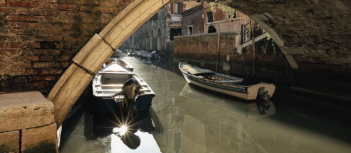 Venedig ist von ca. 175 Kanälen durchzogen, die von 398 Brücken überspannt werden. Ursprünglich waren die Kanäle auf 1,85 m Tiefe ausgelegt, damit der Tidenhub von 60 cm durch eine ständige Zirkulation die Stadt und das Wasser reinigte aber seit der letzten Jahrhundertwende verlanden immer mehr Kanäle und werden sogar zugeschüttet oder stillgelegt. Wie z.B. die breite Via Garibaldi auf Castello.