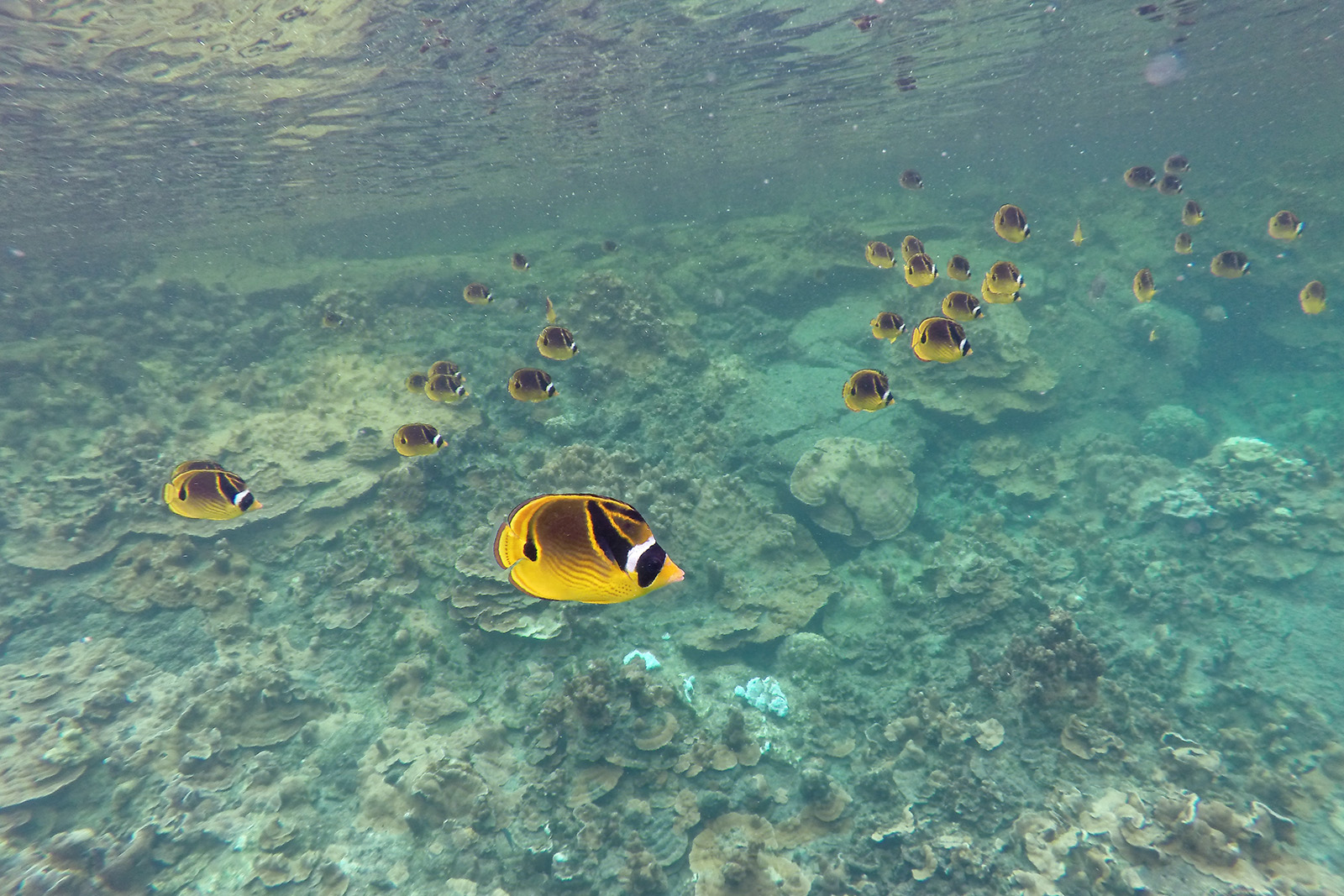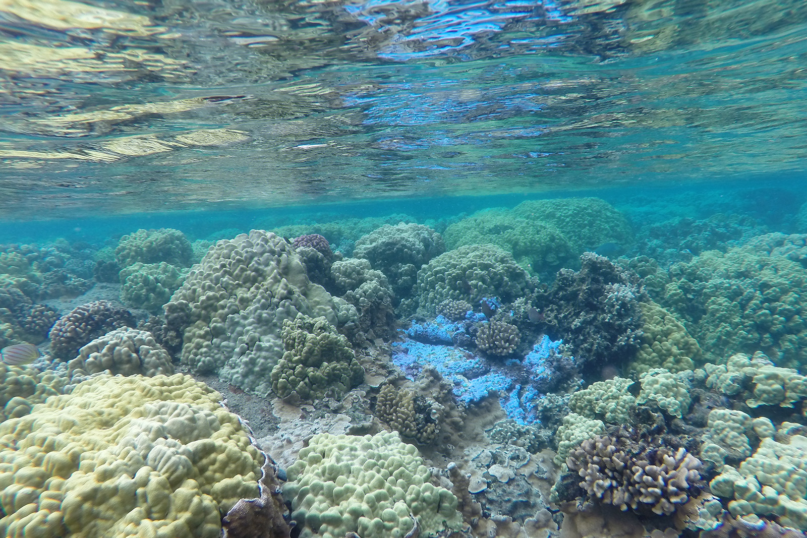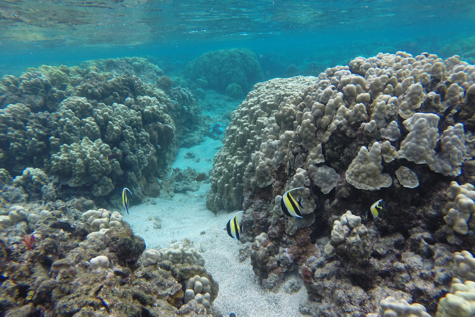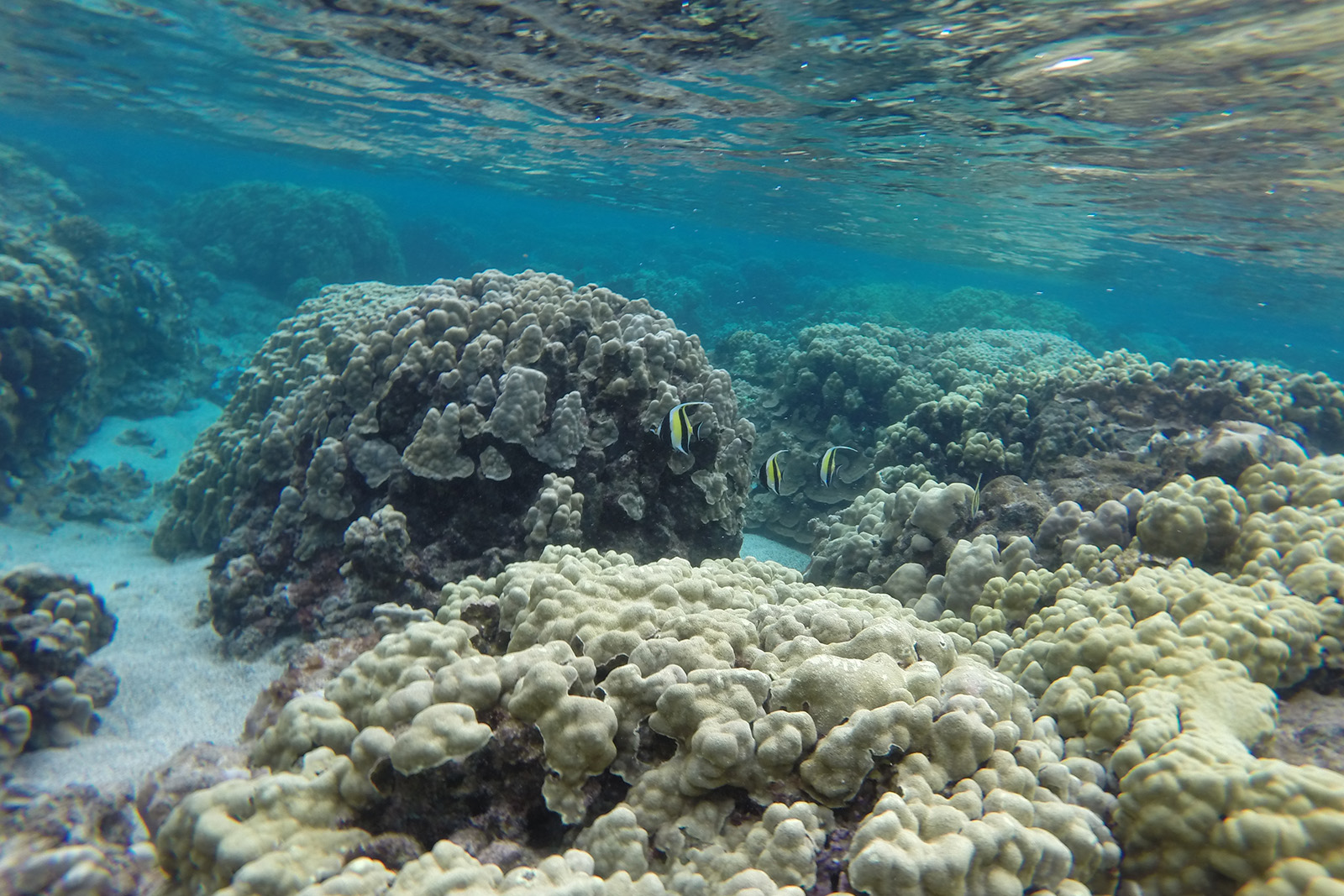 Es sind Lavablasen, die vom Meerwasser bei Flut überspült werden, jedoch keinen direkten Zugang zum Meer haben. Das Wasser ist unheimlich klar, der erste Tide Pool, in dem wir schnorcheln, ist ca. 4 m tief und wir sehen eine unglaublich Fülle von verschiedene bunten Fischen.