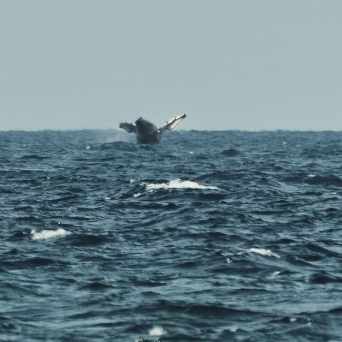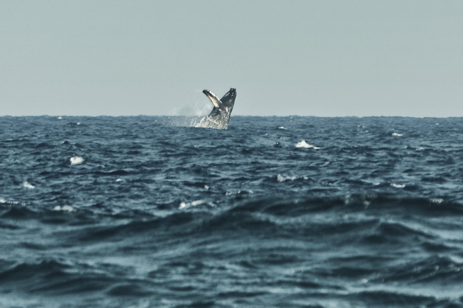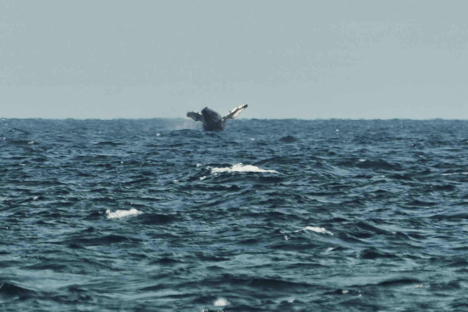 Beim Versuch, ein paar Schildkröten im Wasser zu fotografieren, sehen wir in der Ferne plötzlich einen Buckelwal aus dem Wasser springen. Micha schwenkt blitzschnell das Tele an den Horizont und erwischt tatsächlich einen 'Breaching Whale'. Wir klettern danach noch über die Klippen und versuchen, näher ranzukommen, da die Wale sehr aktiv sind, aber leider verschwinden sie irgendwann aus unserem Blickfeld.