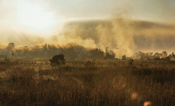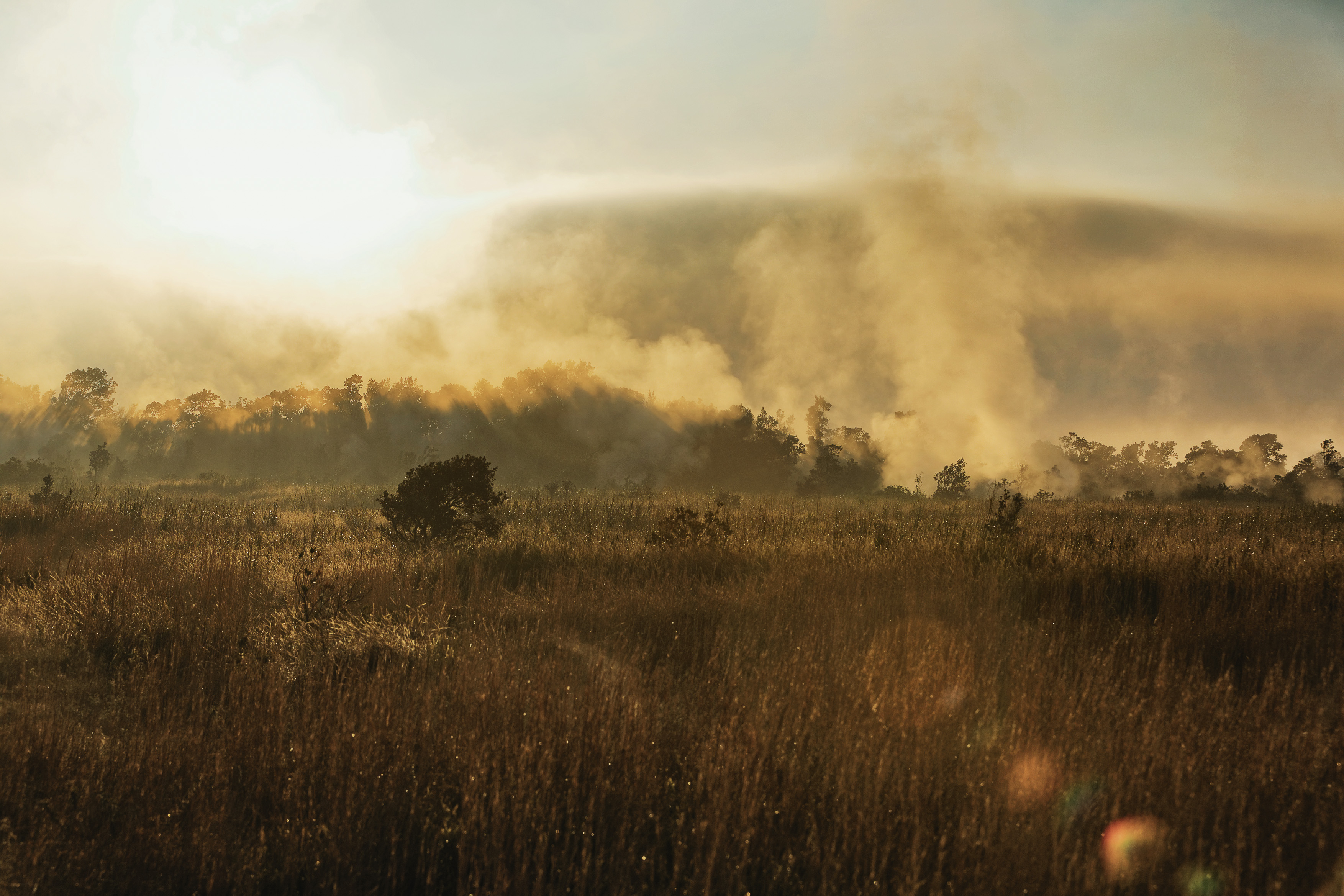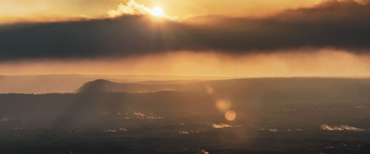 Zum Sonnenaufgang sind wir wieder am Kraterrand und beobachten, wie der Nebel aufsteigt und langsam von der Sonne verdrängt wird.
