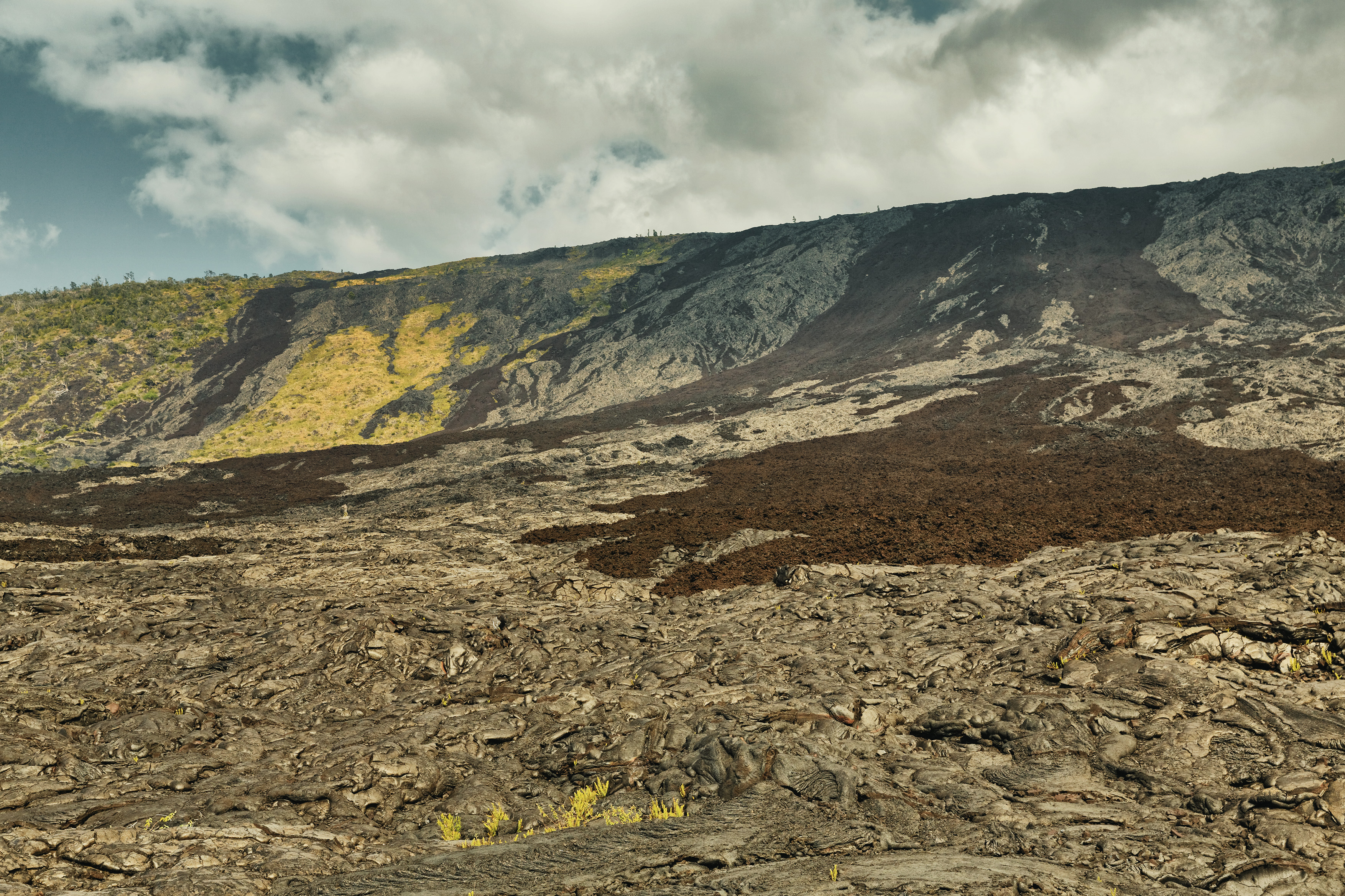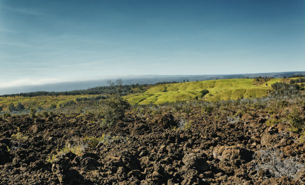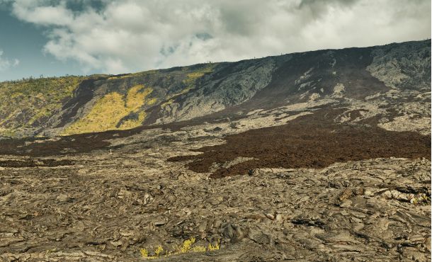 Der Krater Pu’u ’Ō’ō hat mit seiner Lava das ganze Land bedeckt und die Insel wieder um ein paar Meter erhöht.
