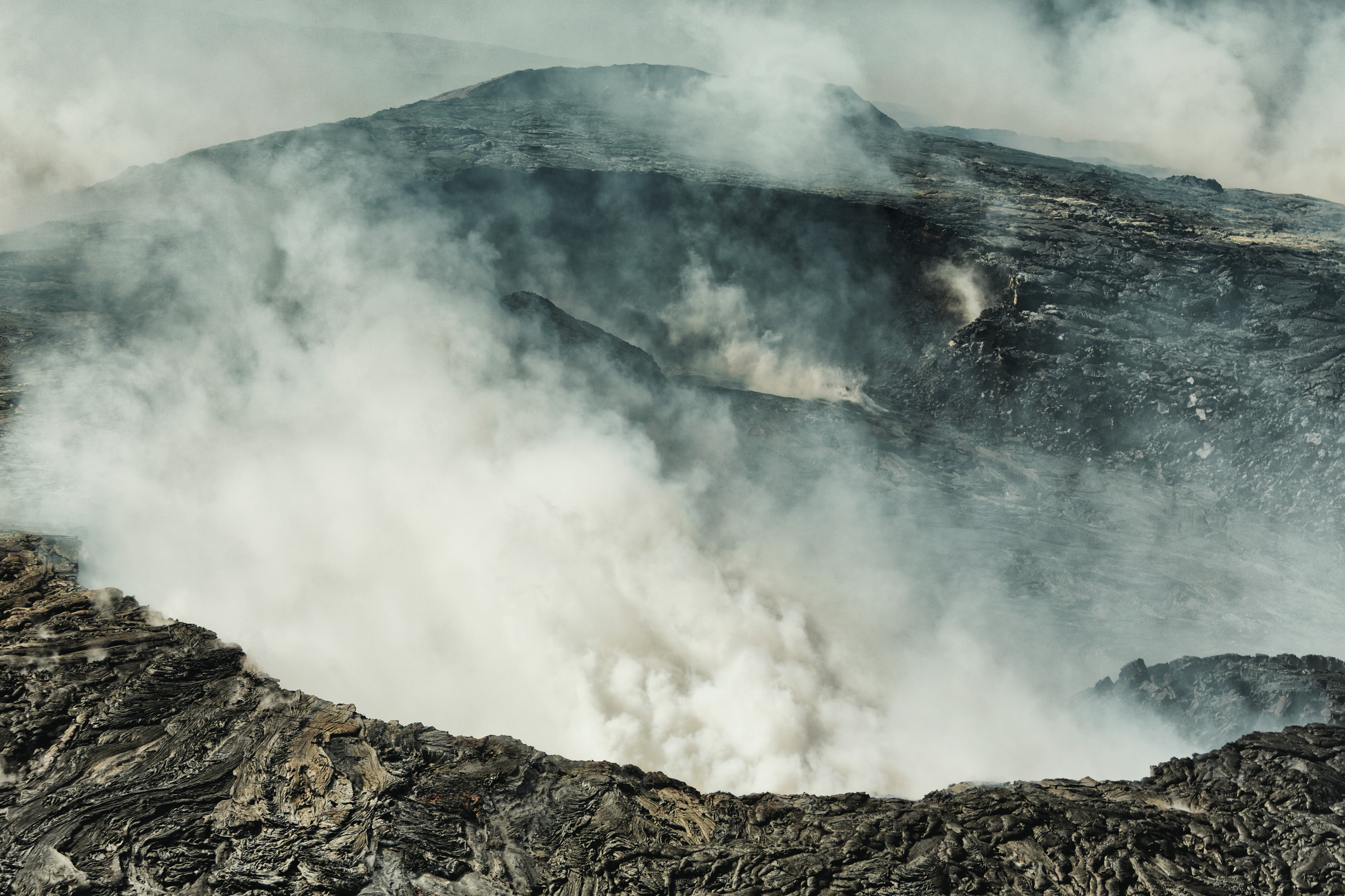 Es dampft und qualmt tagein tagaus. Dabei wälzt der Lavasee des Kraters ständig flüssiges Gestein um, hebt und senkt sich nach eigenen Gesetzen.
