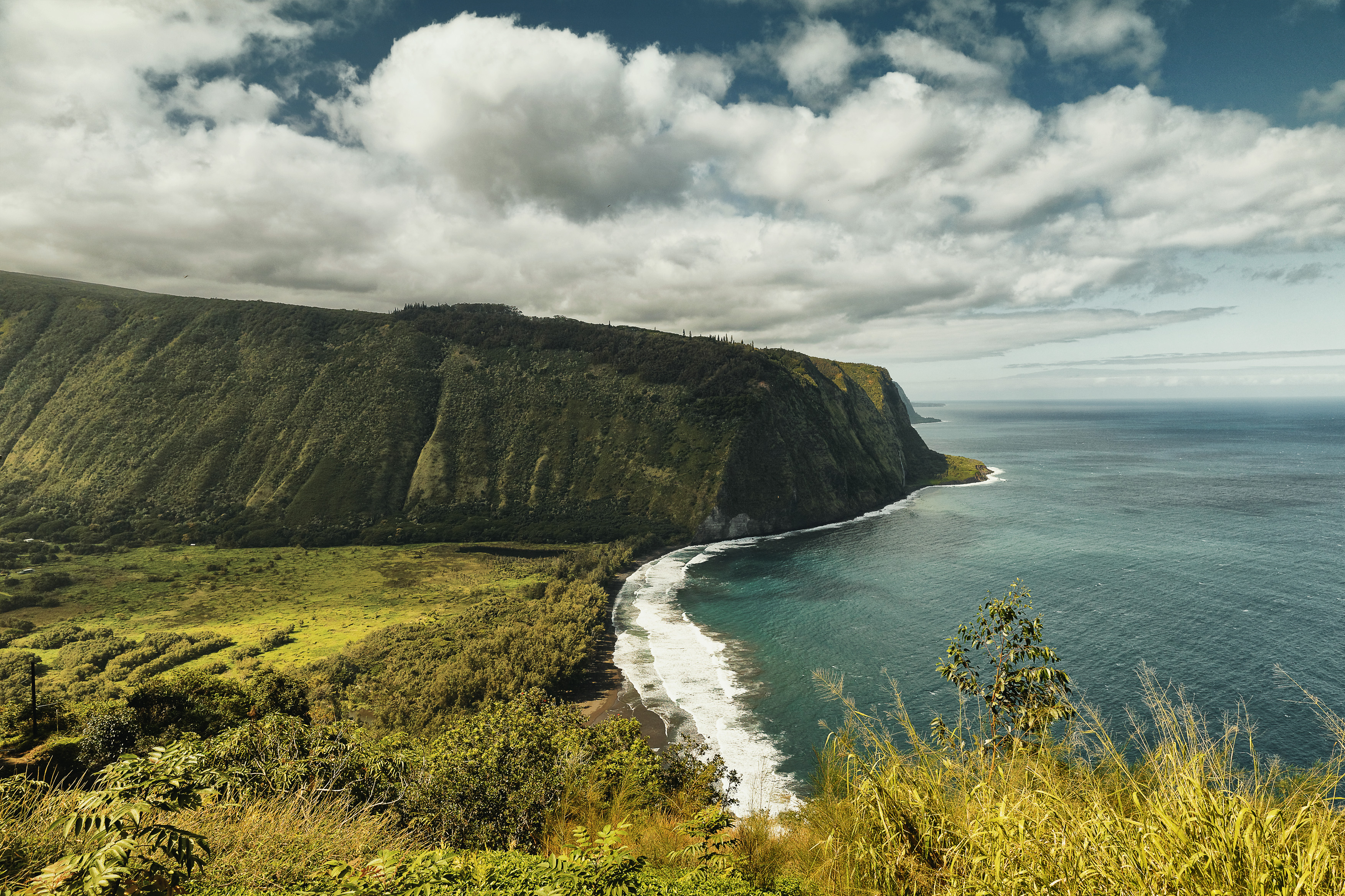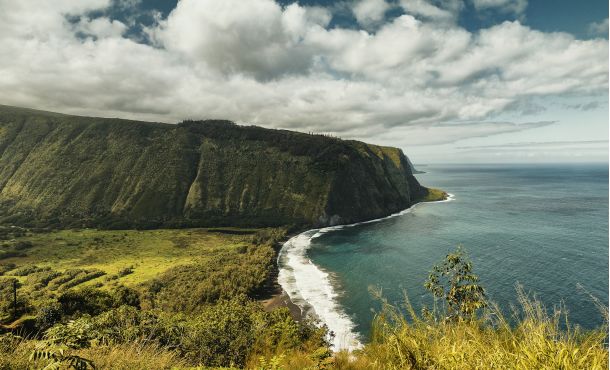 Die nächste Station ist der Waipio Valley Lookout, in diesem Tal gibt es spuren der ersten Siedlungen dieser Insel. Highway 19 (Mamaloa) im Norden der Insel führt uns nach Kuhio Village - unseren Abzweig nach Norden der Insel. Wir bewegen uns durch eine traumhaft schöne Landschaft mit dem Wolkenverhangen Mauna Kea im Hintergrund.