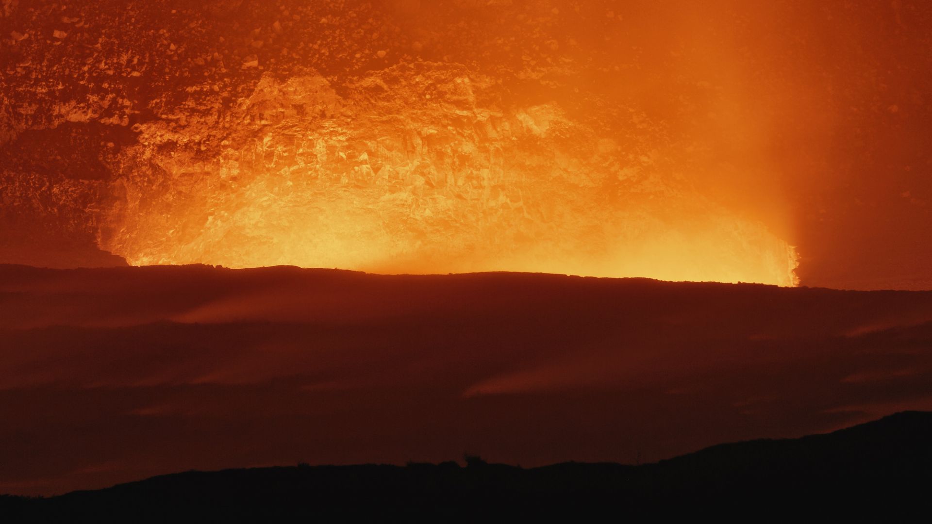 Der Lavasee erleuchtet hell die Nacht.
