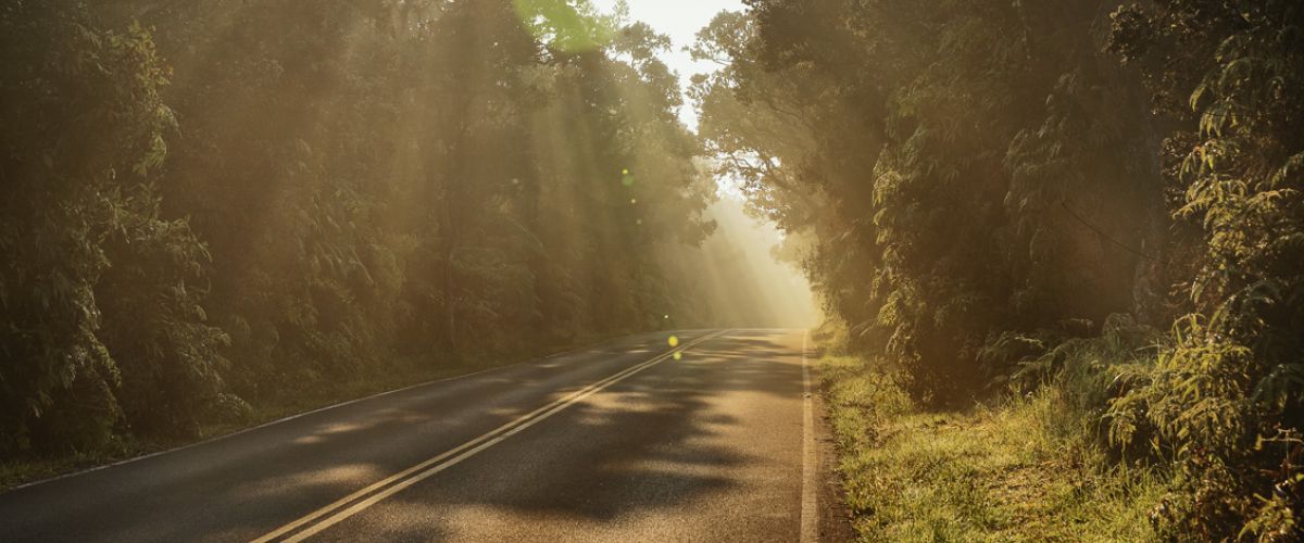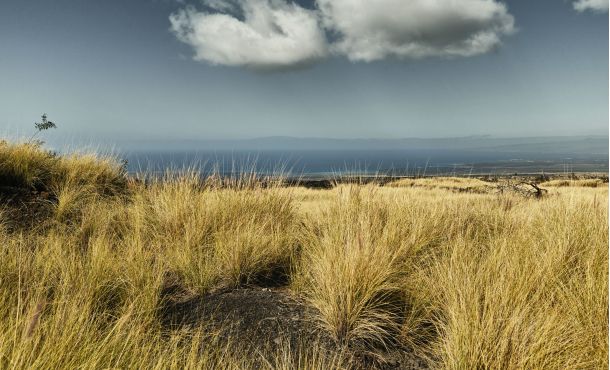 Die Caldera ist zwar seit ca 100 Jahren ausgehärtet, aber überall steigen Rauchschwaden und sonstige Gase auf. An den Steam-Vents liegt der Tau noch auf den Gräsern und glitzert im Sonnenlicht. Wir öffnen das Verdeck unseres Camaro, machen uns auf den Weg und 'cruisen' entlang der 30,57 Km lange Straße durch den östlichen Grabenbruch und Küste des Hawaii Volcanoes National Parks.