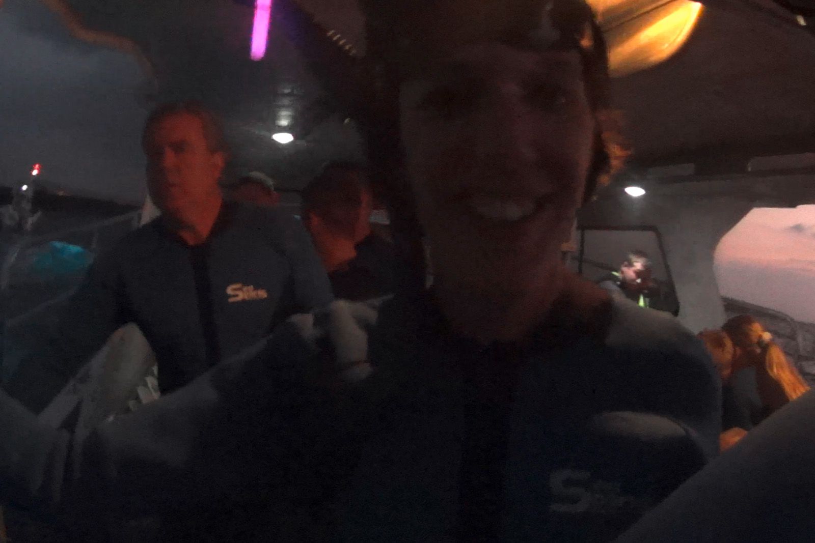 Inzwischen gibt es auch die ersten Seekranken, denn schließlich bewegen wir uns auf dem doch moderaten Seegang ständig auf und ab. Uns ist das vor lauter Aufregung gar nicht so aufgefallen, aber als die Crew anfängt alle Gäste wieder einzusammeln und auf das stark schwankende Boot zu hieven, wird es uns auch ein wenig flau im Magen. Und der Trick auf den Horizont zu schauen funktioniert zu diesem Zeitpunkt auch nicht mehr so gut, denn Nachts ist er leider nicht mehr zu sehen.