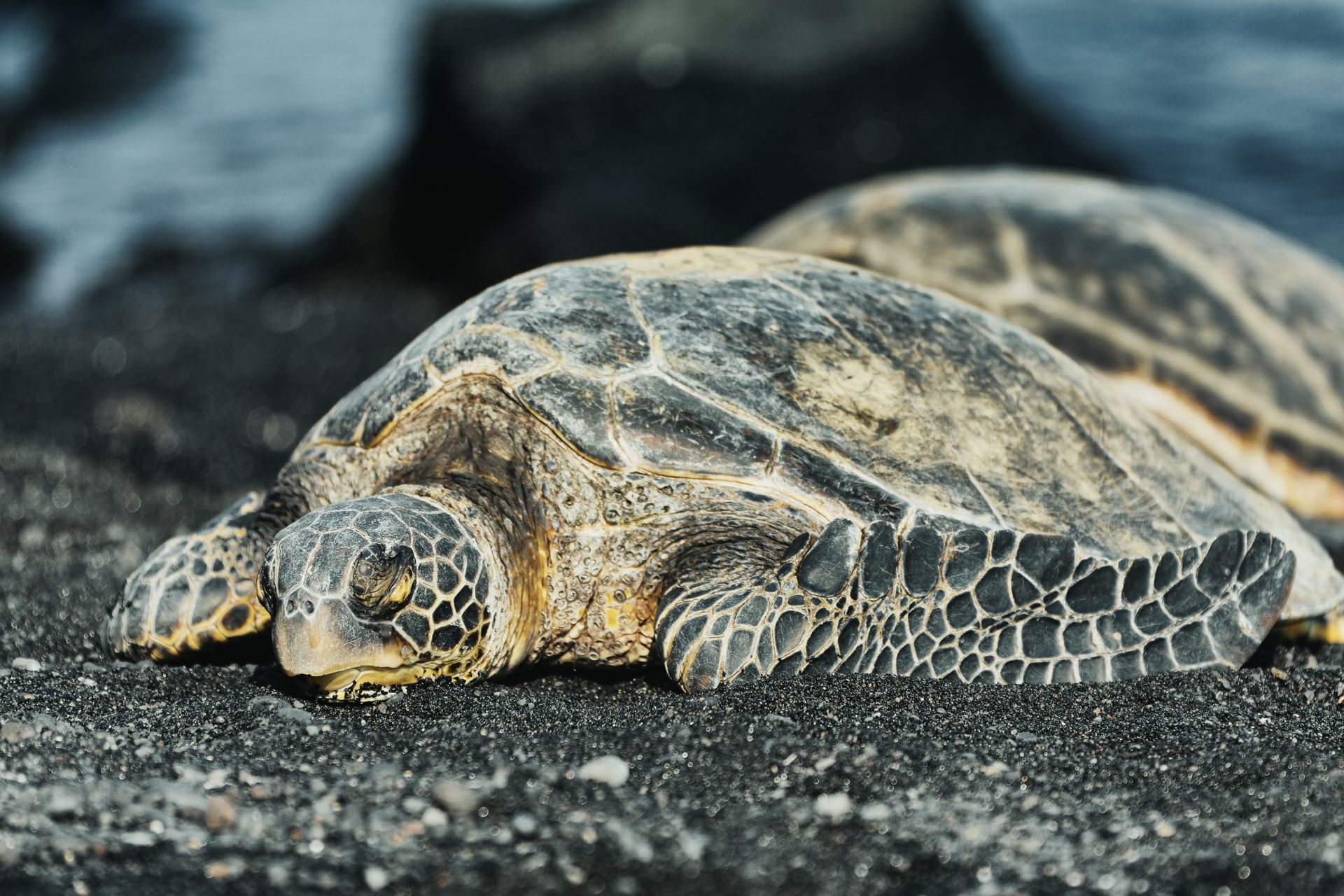 Punalu'u Beach ist ist ein schwarzer Sandstrand, an dem es die hawaiianischen 'Green Turtles' gibt. Und siehe da, es liegen tatsächlich ein paar im Sand und dösen in der Sonne.