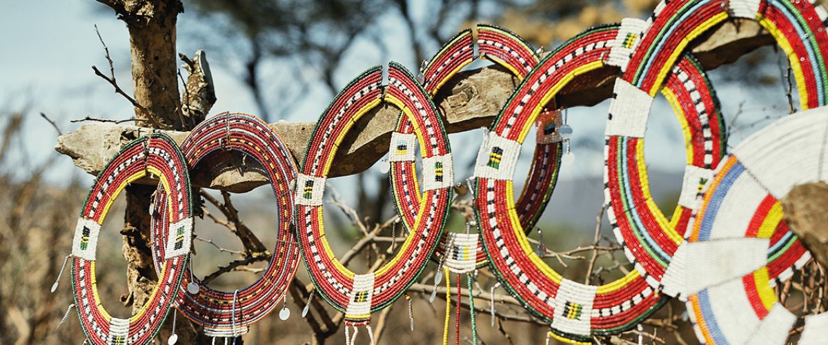 Danach beginnt der Rundgang. Die Hütten, die aus Kuhdung gebaut sind – da feuchter Lehm in dieser trockenen Gegend Mangelware ist – stehen im Kreis um einen eingezäunten Bereich, in den nachts die Ziegen und Kühe getrieben werden. An diesem Zaun hängt auch der ganze Perlen-Schmuck, den die Massai tragen und natürlich auch an die Touristen verkaufen. Wir krabbeln in eine dieser kleinen, engen, dunklen und stinkigen Hütten. Die Hütten gehören immer den Frauen, die Männer können sich jeden Abend überlegen, zu wem sie auf die Ziegenhaut hüpfen. Es ist stockdunkel und stinkt nach Rauch. Es gibt keinen Rauchabzug, da der Rauch die Moskitos abhält.