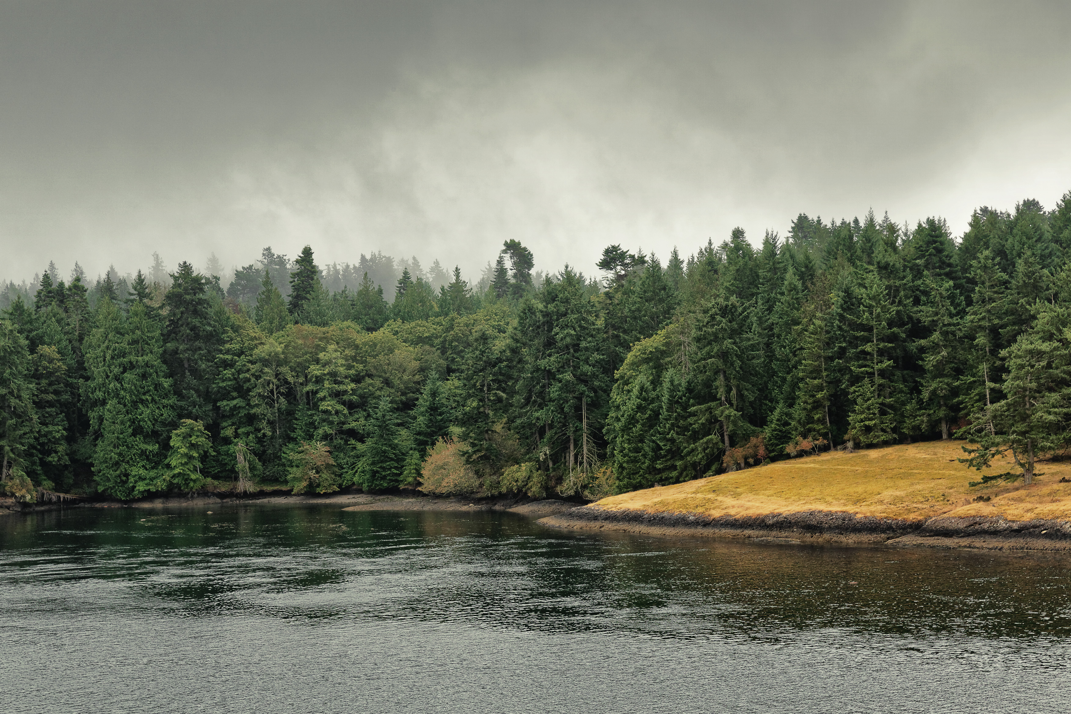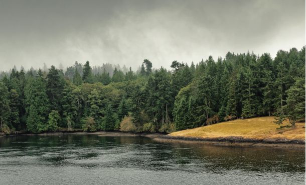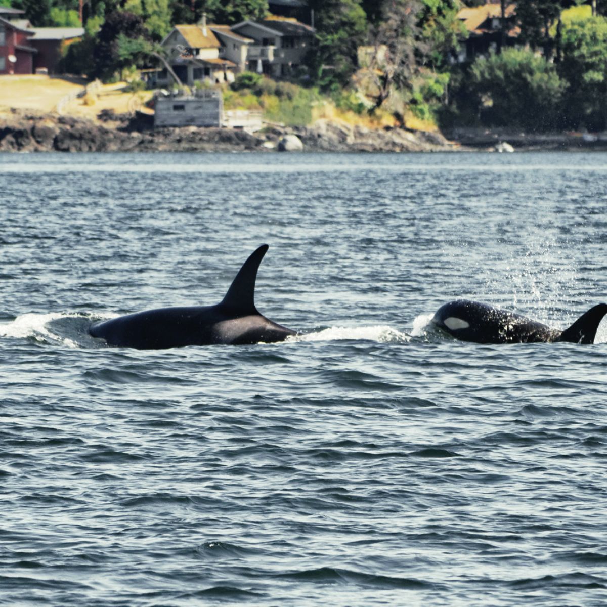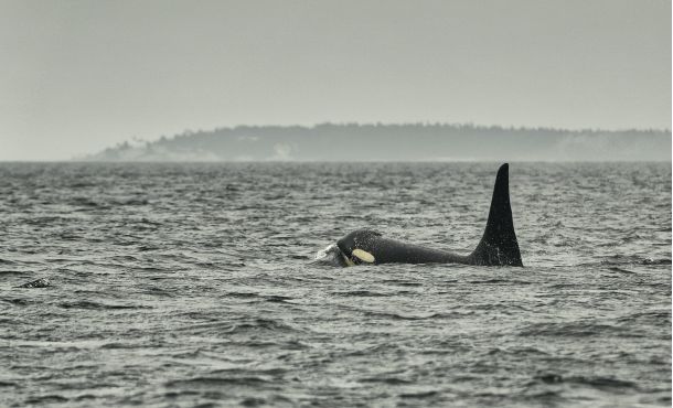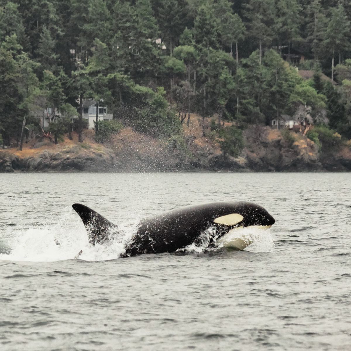 Plötzlich dreht das Boot scharf nach Backbord ab und der Captain teilt uns mit, dass weiter im Norden eine Gruppe von Transcendences in der Haro Strait gesichtet wurden. Wir hangeln uns am Küstensaum der San Juan Insel entlang und folgen einer kleiner Gruppe von Orcas, die mit schöner Regelmäßigkeit an der Wasseroberfläche erscheinen.
