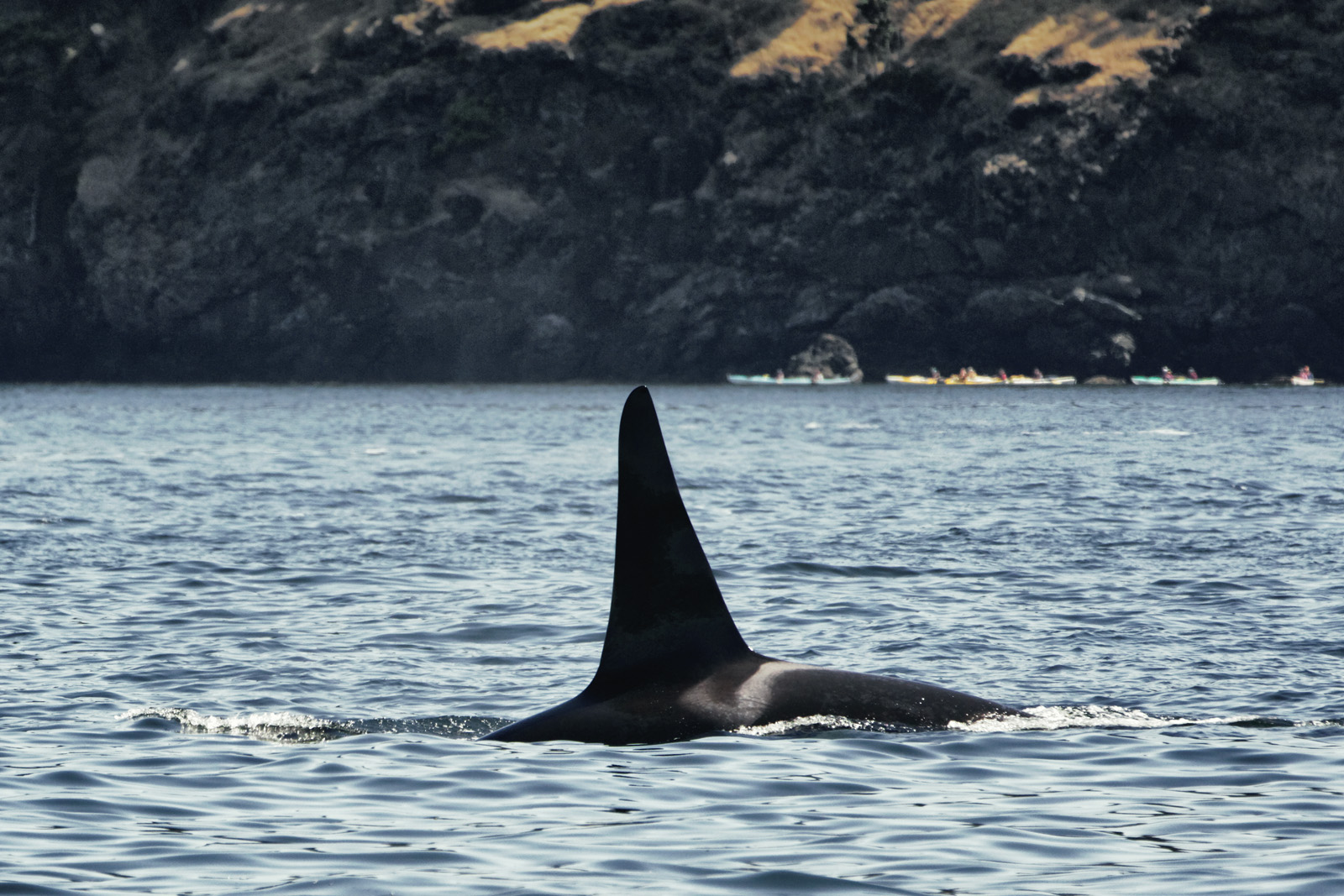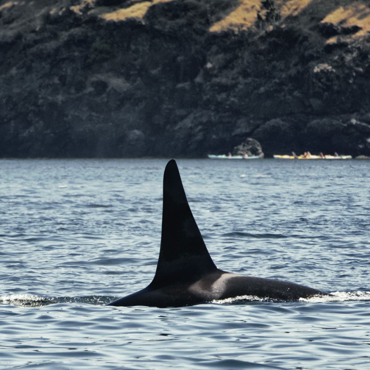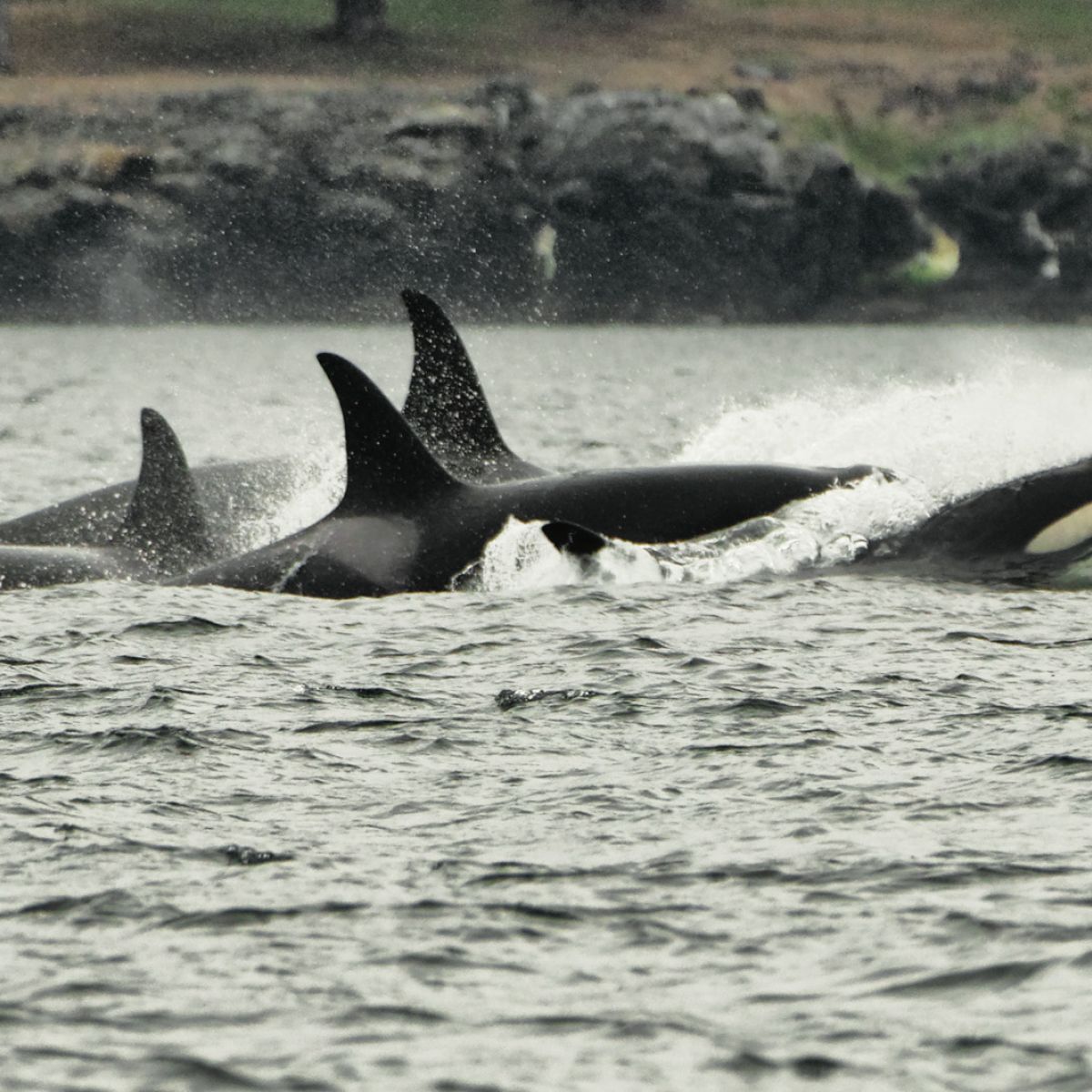 Als von Norden eine weitere Familie von Orcas kreuzt, bleibt unser Boot liegen und lässt die Tiere auf sich zukommen. Nach Seerecht greift die