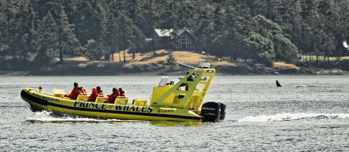 Walbeobachtungs-Boot, das an ein überdimensioniertes RIB erinnert, liegt direkt an der Wharf Street, Downtown Victoria. Und nachdem wir den Hafen in Schrittgeschwindigkeit verlassen haben, brausen wir in die Mitte der Strait of Juan de Fuca auf das amerikanische Festland zu. Am Horizont erheben sich die Bergketten des Mt. Olympus aus dem Dunst und wir schauen konzentriert auf das tiefblaue Wasser und