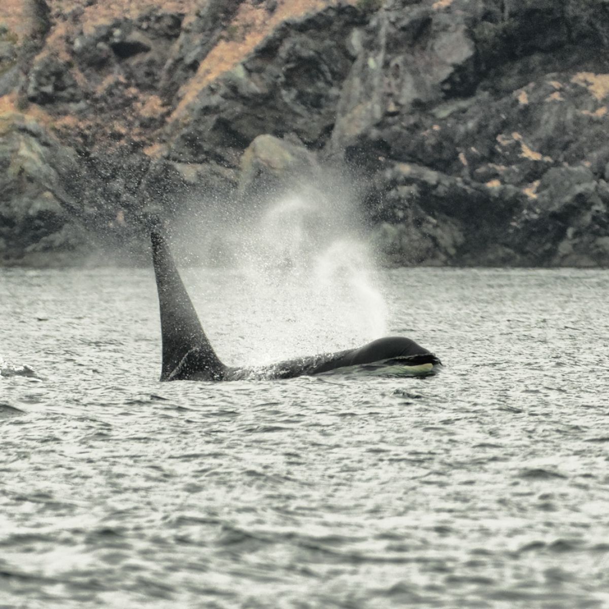 Bannmeile dieses Mal nicht, denn wir waren ja zuerst da. Die Orcas sind flink unterwegs und es ist sehr schwer den genauen Punkt zu erwischen, an dem ein Tier zum Atmen an die Oberfläche kommt. Aber spektakulär ist das Schauspiel allemal! Viel zu schnell geht es wieder auf den Rückweg, ein kleiner Abstecher zu einer