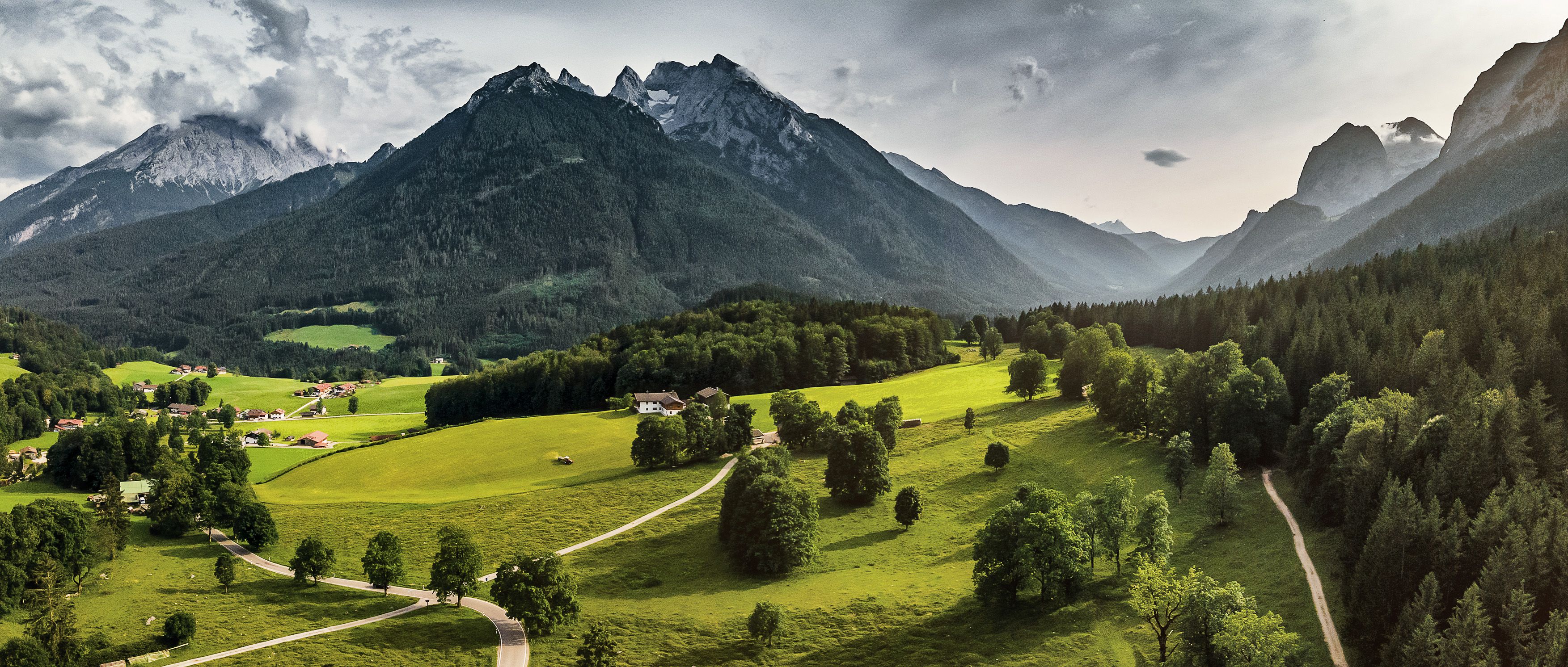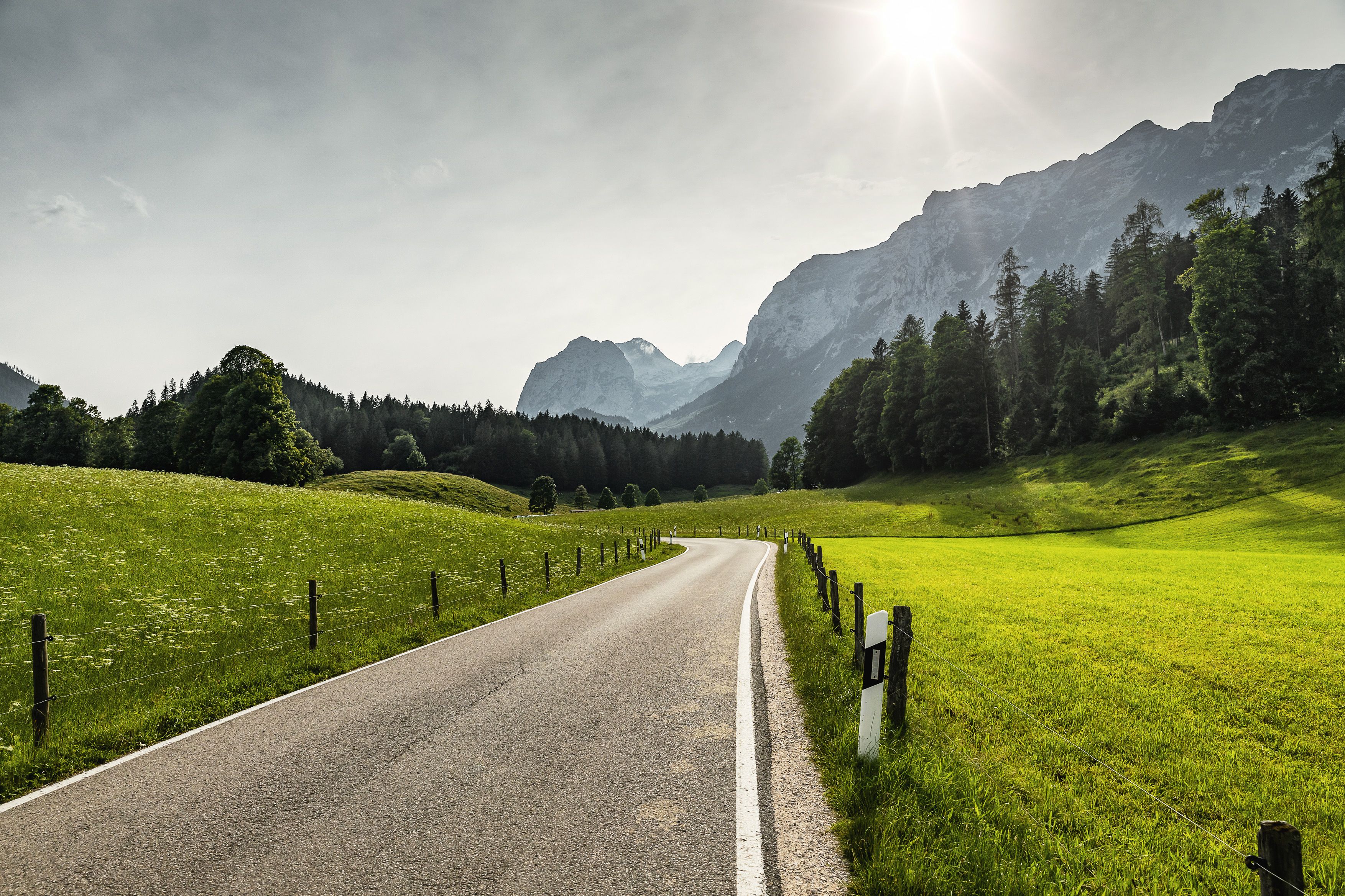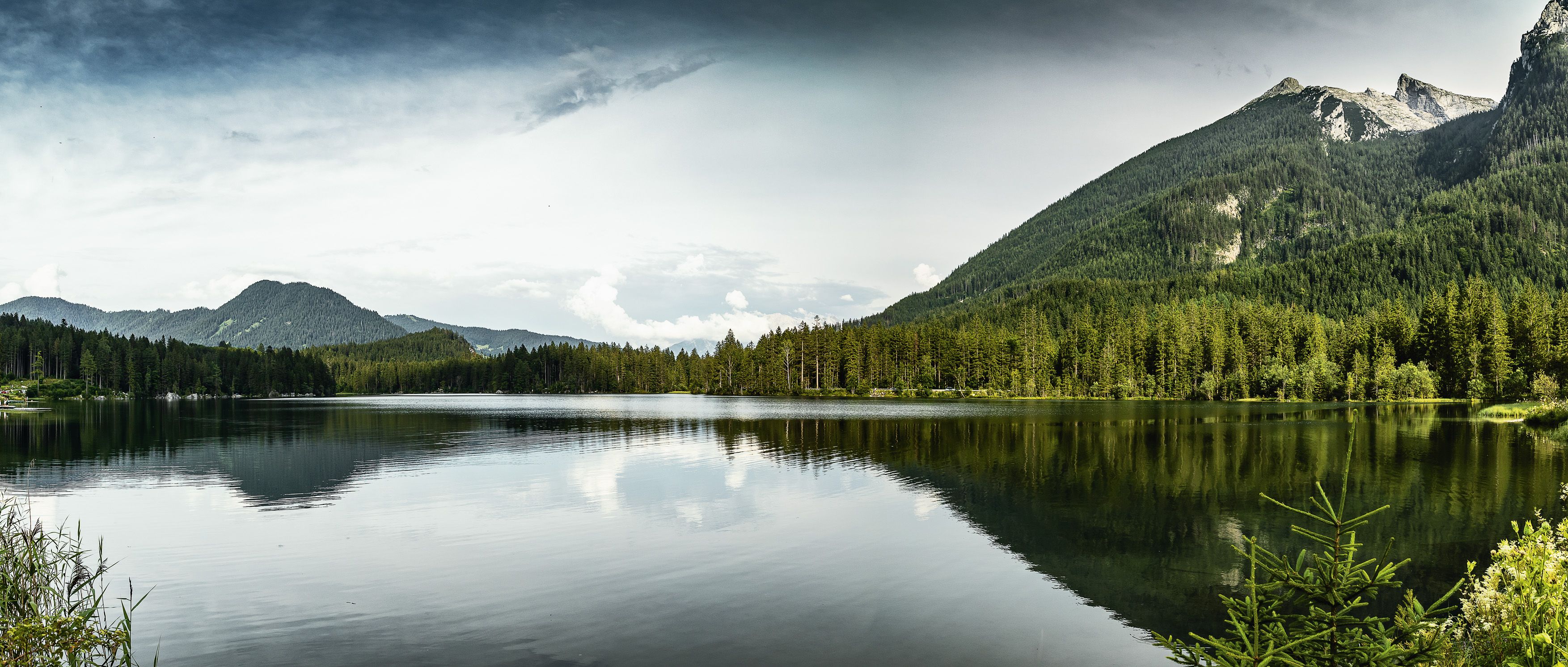 Am Nachmittag entscheiden wir uns spontan, an den Hintersee zu fahren. Der direkte Weg ist uns verwehrt, denn Teile der Alpentrasse sind wegen Bauarbeiten gesperrt. Und so werden wir über interessante Umleitungen durch die Berchtesgadener Landschaft geführt und hätten wohl nie die malerische, alte Reichenhaller Straße entdeckt. Die Sonne steht schon tief, lässt aber die saftigen Weiden vor uns und die Bergflanken des Hochkaltermassivs im Hintergrund aufleuchten.