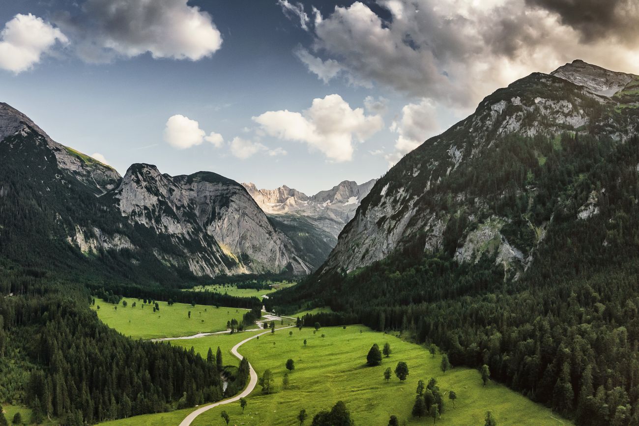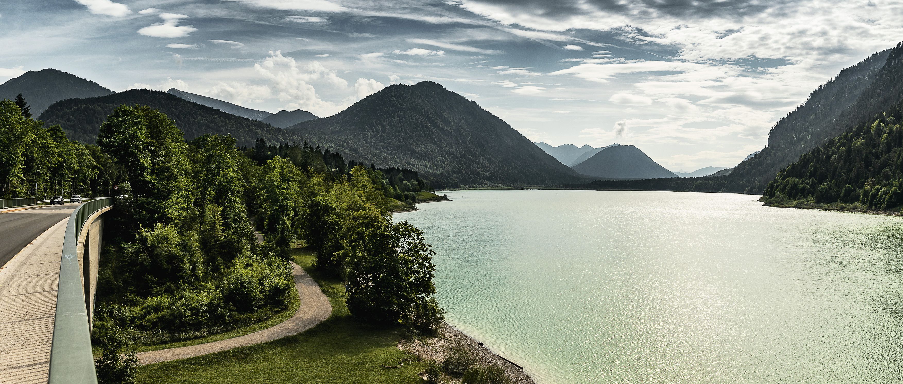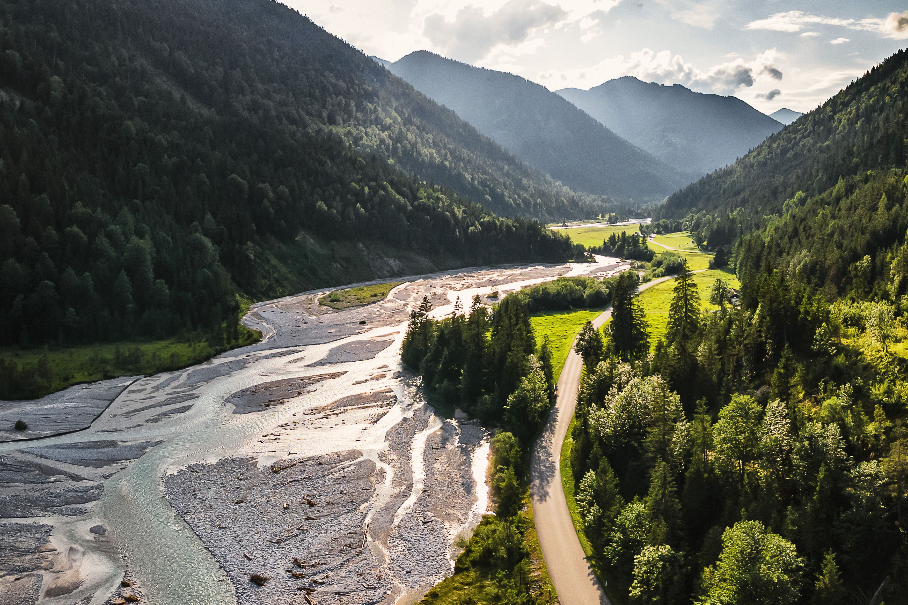 Am Nachmittag entscheiden wir uns spontan, an den Hintersee zu fahren. Der direkte Weg ist uns verwehrt, denn Teile der Alpentrasse sind wegen Bauarbeiten gesperrt. Und so werden wir über interessante Umleitungen durch die Berchtesgadener Landschaft geführt und hätten wohl nie die malerische, alte Reichenhaller Straße entdeckt. Die Sonne steht schon tief, lässt aber die saftigen Weiden vor uns und die Bergflanken des Hochkaltermassivs im Hintergrund aufleuchten.