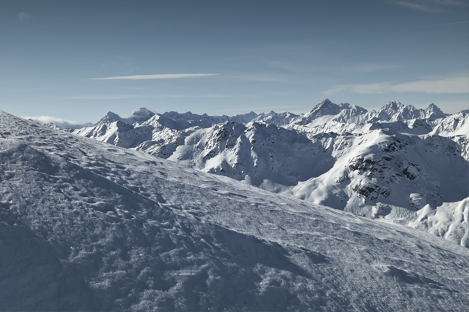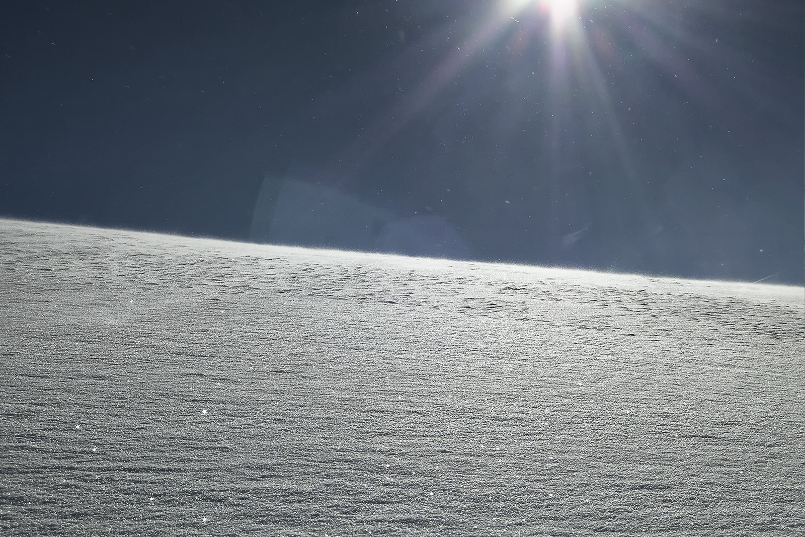 Bei allerfeinstem Sonnenschein verbringen wir unsere Zeit an der frischen Bergluft und freuen uns, wie bei eisigen Temperaturen der Schnee bei jedem Schritt unter den Füßen knarzt und die Kristalle im Licht der Frühjahrssonne funkeln.