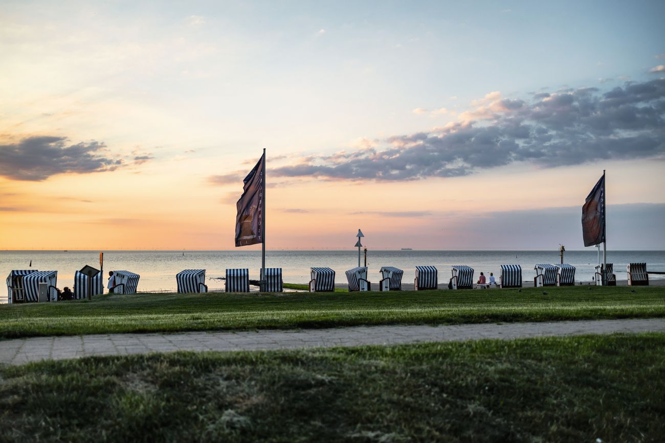 Das Wetter ist besser als angekündigt und der Nordstrand entsprechend leer. Wir suchen uns am Strand Oase einen verlassenen Strandkorb, drehen ihn gegen den Wind und verweilen ein wenig. Das Rauschen des Windes und der leichten Brandung verschmelzen zu einem Klangteppich, der schon fast meditativ ist. Die Sonne wärmt uns noch dazu den Bauch – was könnte in diesem Moment schöner sein?