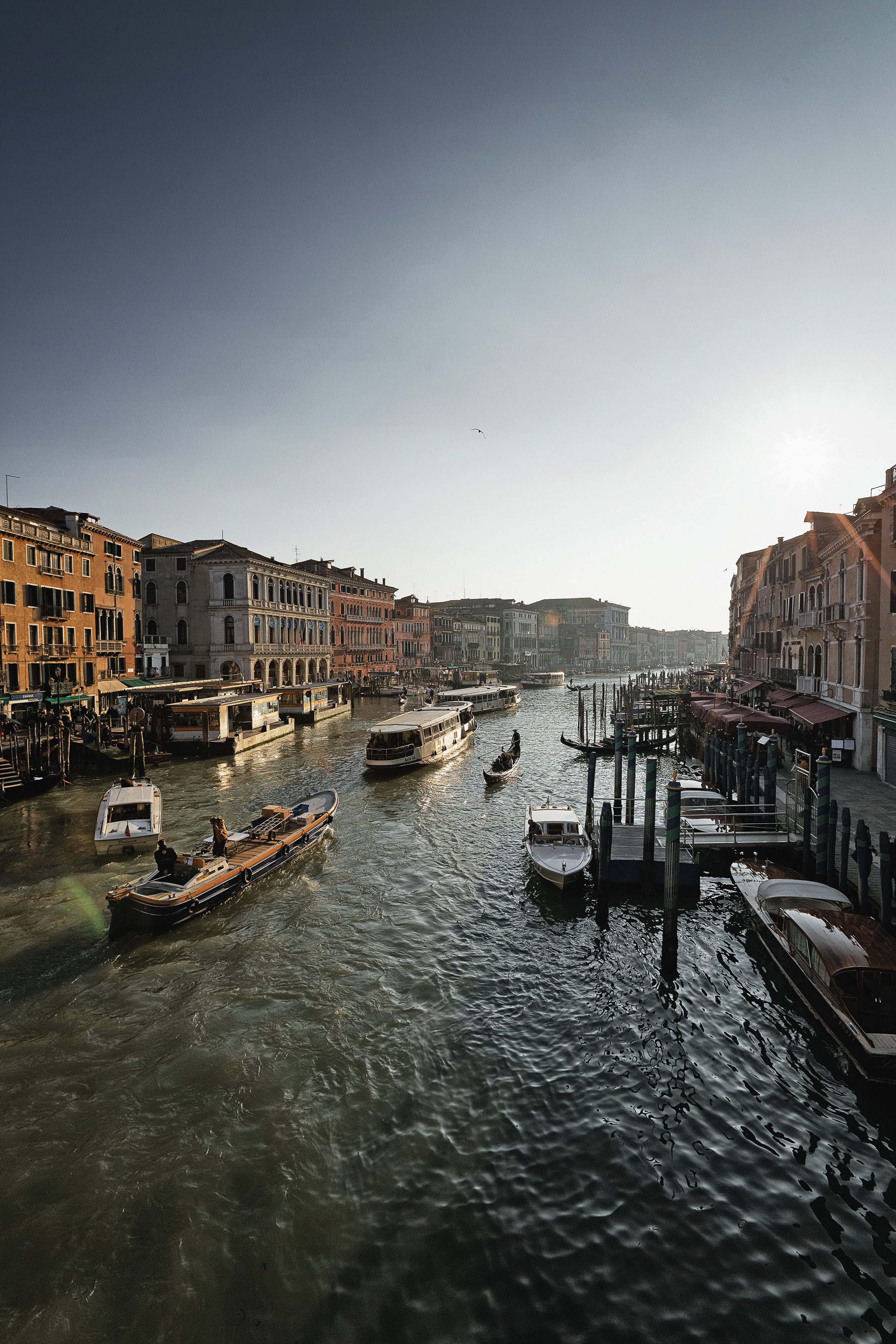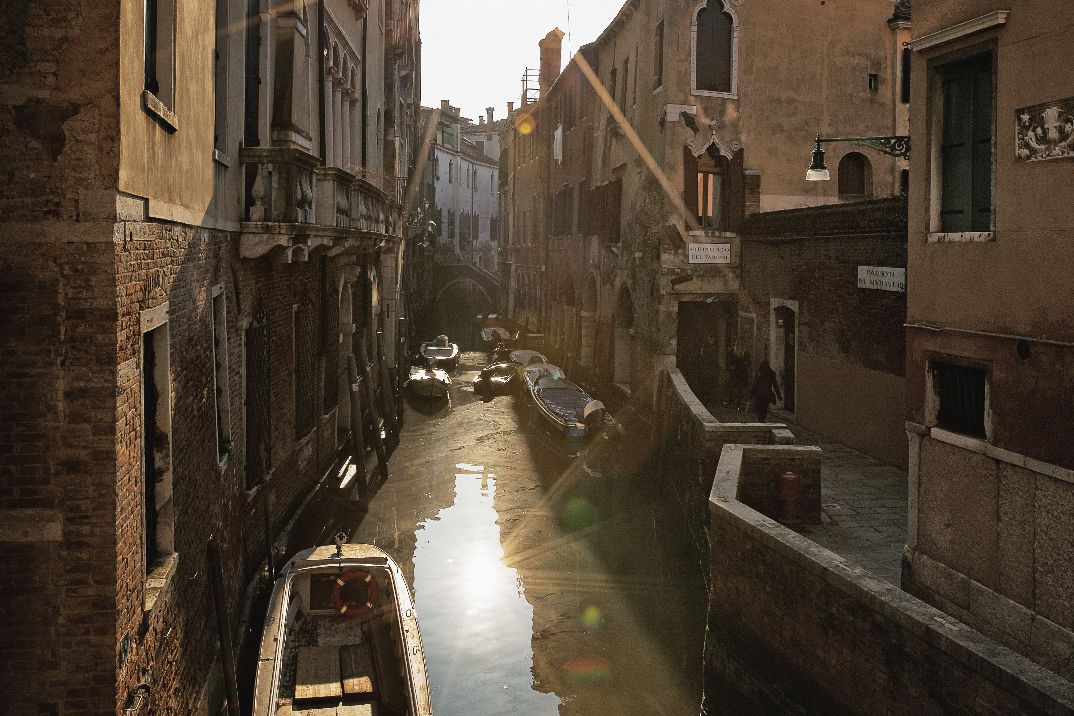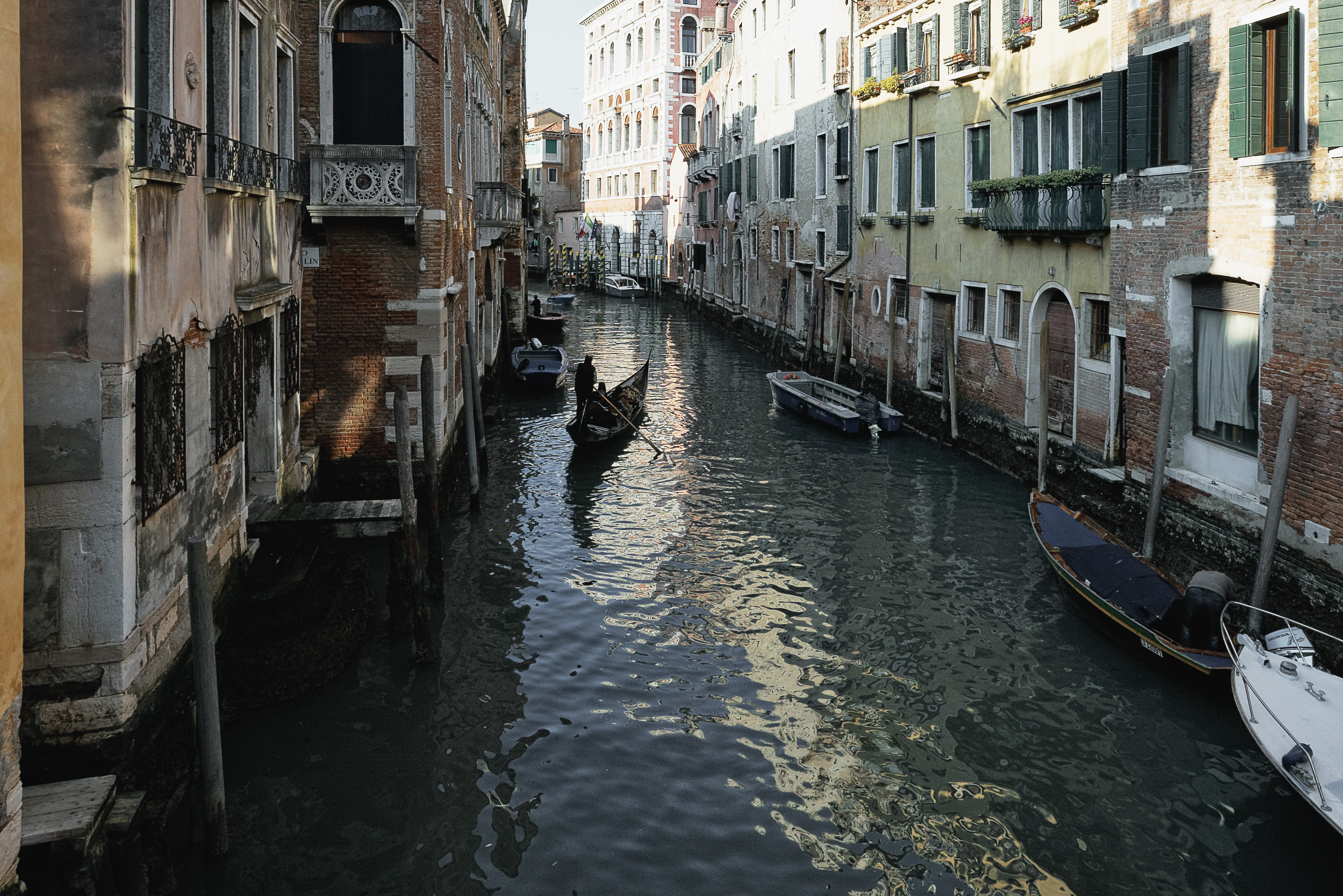 Venedig ist von ca. 175 Kanälen durchzogen, die von 398 Brücken überspannt werden. Ursprünglich waren die Kanäle auf 1,85 m Tiefe ausgelegt, damit der Tidenhub von 60 cm durch eine ständige Zirkulation die Stadt und das Wasser reinigte aber seit der letzten Jahrhundertwende verlanden immer mehr Kanäle und werden sogar zugeschüttet oder stillgelegt. Wie z.B. die breite Via Garibaldi auf Castello.