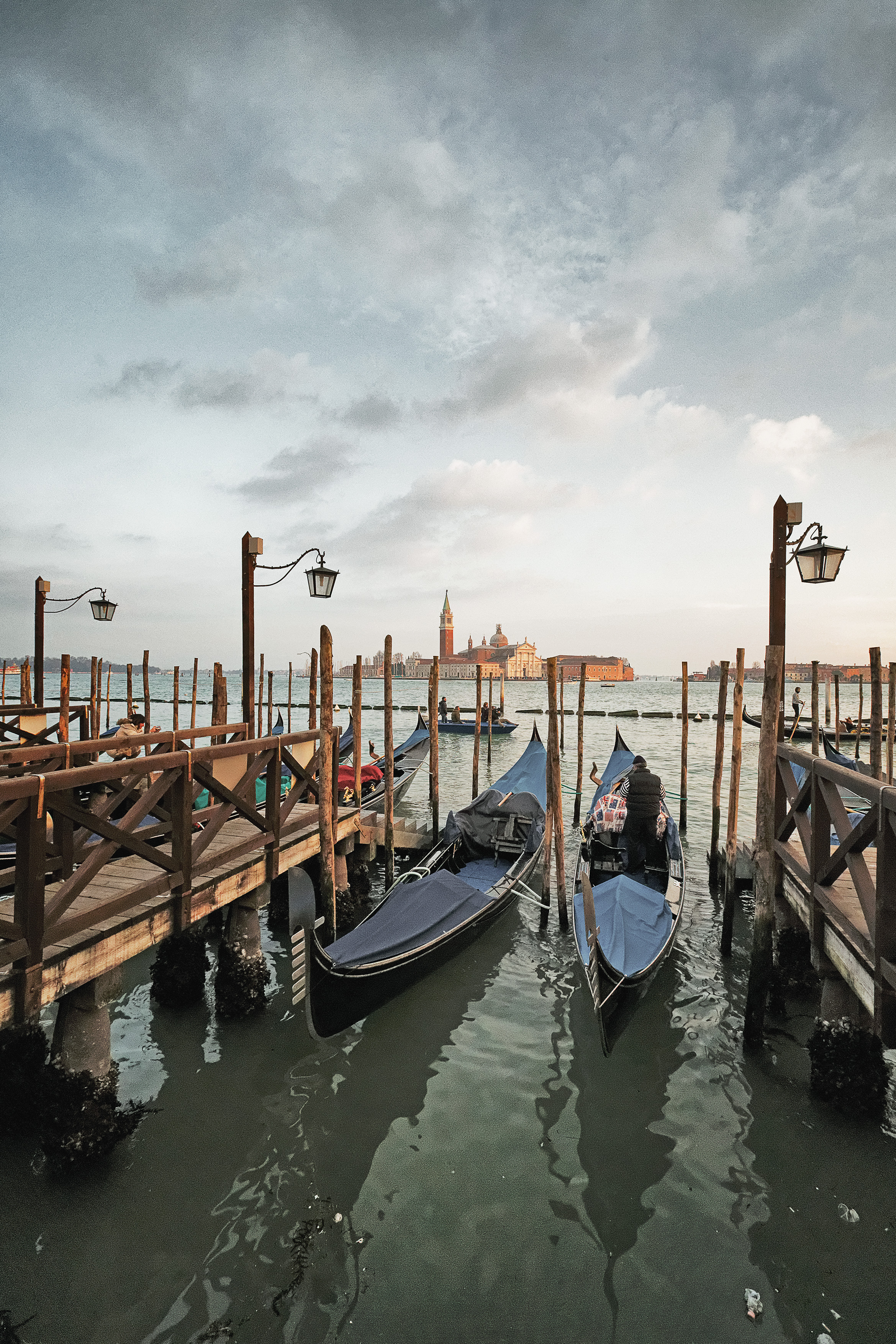 Wir checken in unser Hotel im Stadtteil Mestre ein und machen uns gleich auf den Weg mit dem bestens ausgebauten Nahverkehr. Am Piazzale Roma, dem Bus-Terminal werden wir ausgespuckt und reihen uns in Tausende von Touristen ein, um uns gegenseitig durch die Stadt zu schieben. Aber kaum dass wir ein paar Kanäle überquert haben und um ein paar Ecken gebogen sind, hat sich das Gewusel entzerrt und wir genießen die Wintersonne an diesem klaren Tag im Februar. Der Südwesten der Stadt ist bei weitem nicht so überlaufen, wie die ganzen Sehenswürdigkeiten im Zentrum oder im Süden.