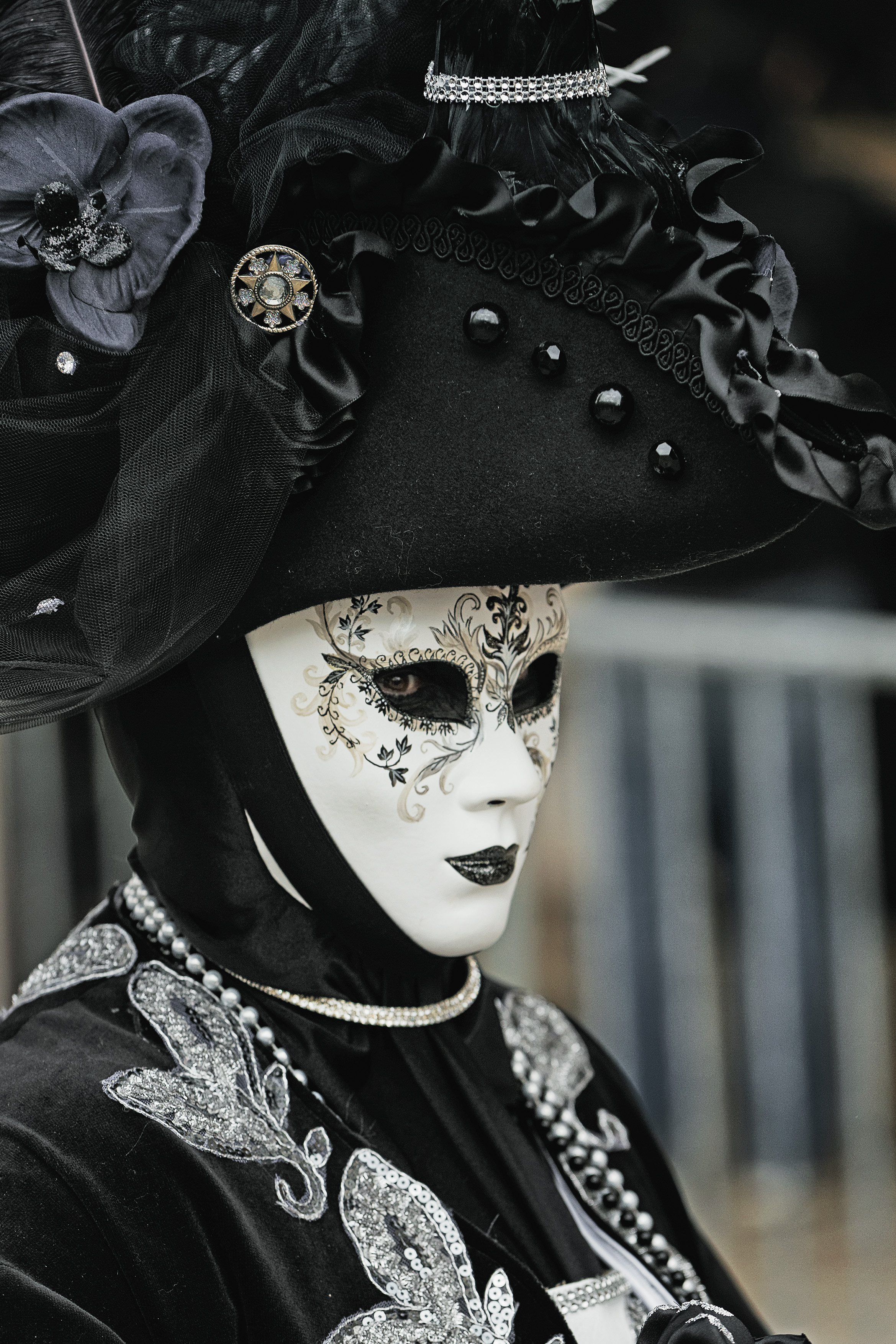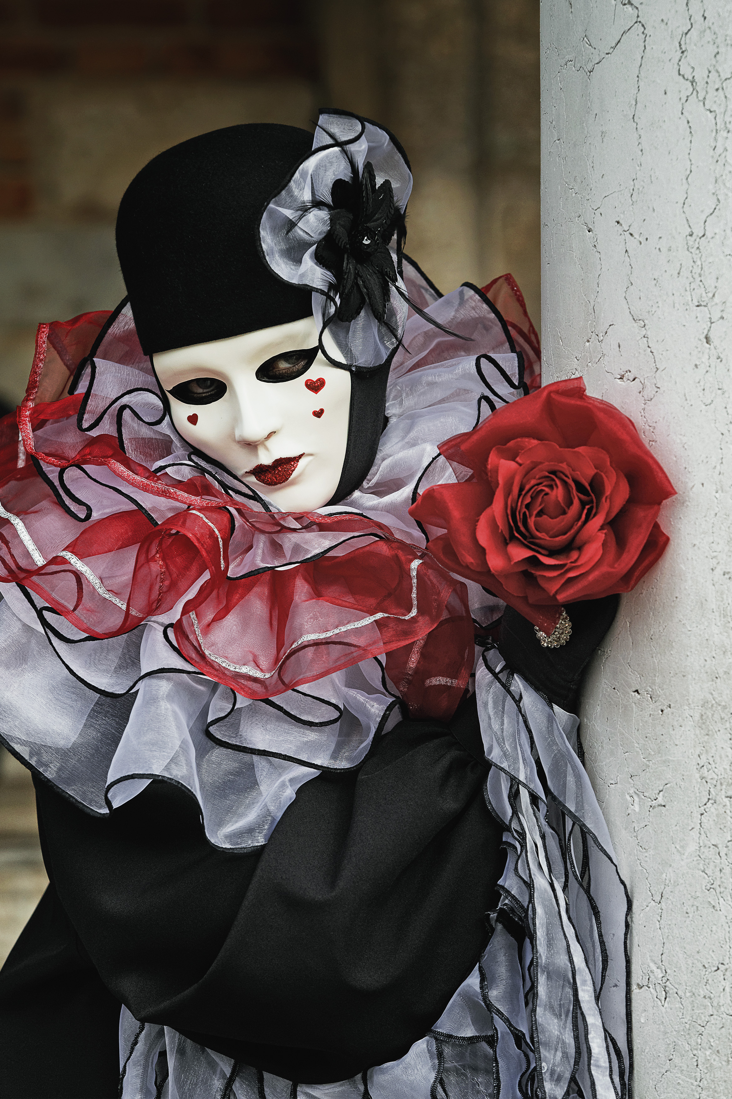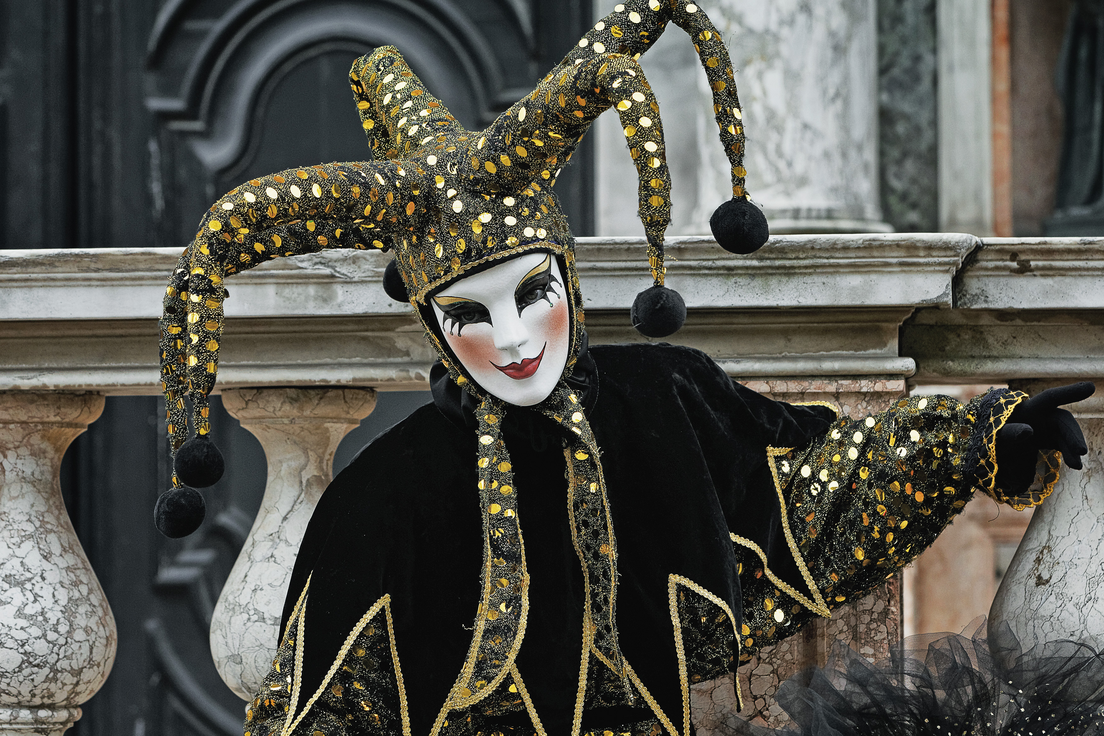 Gestärkt machen wir uns auf den Weg und haben nun genügend Zeit, die Stadt weiter zu erkunden und uns auf die Suche nach schönen Motiven zu machen. Viele Kostümträger lassen sich hier gerne vor antik-maroder Kulisse ablichten. Die meisten Kostüme haben aber kaum etwas mit der Historie der Stadt oder der Tradition des Karnevals in Venedig zu tun, sondern sind sehr fantasievoll und einfach zauberhaft. Und nicht gerade günstig auszuleihen. Meist gibt es Prozente auf den Mietpreis, wenn man eine Stunde damit durch die Stadt flaniert und die Ware für den optischen Genuss vermarktet. Wir suchen noch nebenbei die Strumpfhosen für die Herren und werden nördlich des Markusplatz fündig, in eben einem dieser Läden, die ein Rundum-Sorglos-Paket verleihen.