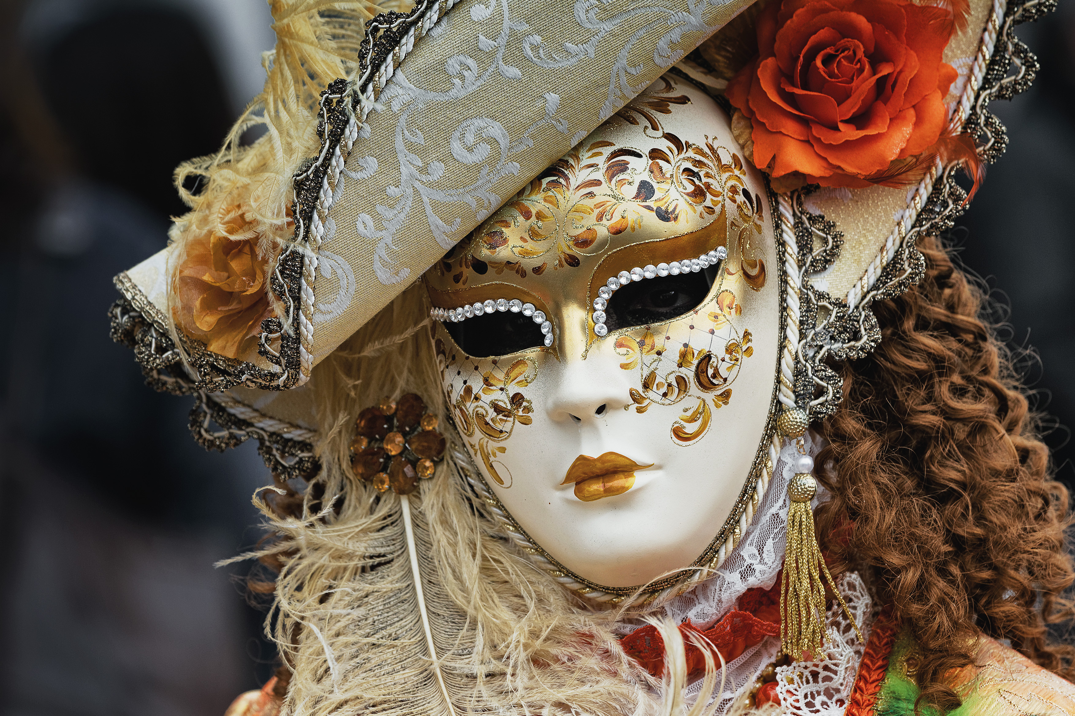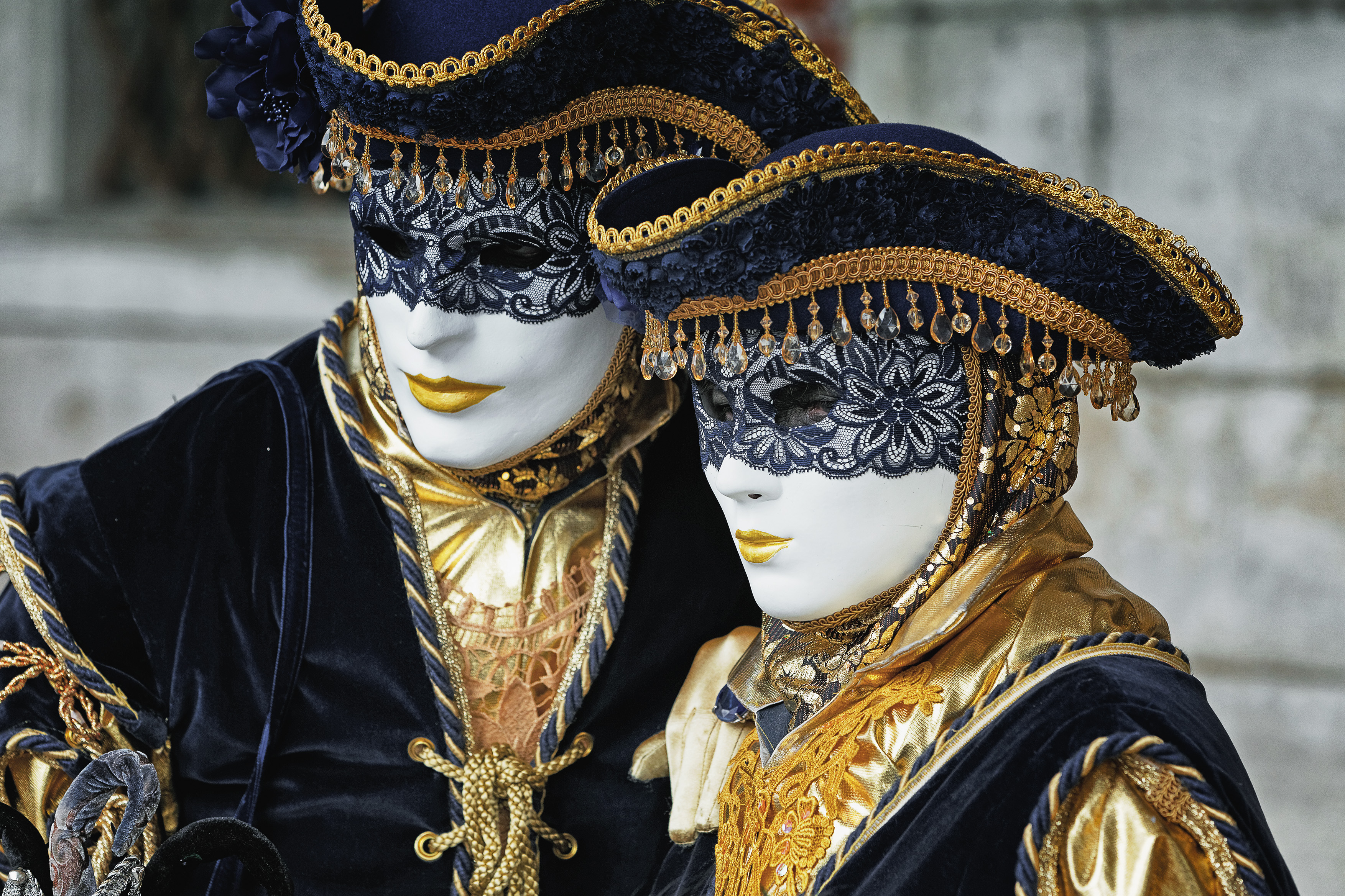 Wir sind auf der Suche nach einer Halbmaske, die ihren Ursprung im Theater oder Schauspiel findet, wie z.B. die Theaterform der Commedia dell’arte. Sie erleichtert das laute und deutliche Sprechen und außerdem hat diese Art von Maske den Vorteil, dass man auch ohne Schwierigkeiten damit essen – und vorallem trinken kann! Und wir wundern uns nicht, als wir durch die Gassen der Stadt streifen, an fast jeder Ecke Masken in jeder erdenklichen Form zu finden. Tausende Masken im Angebot - aber nichts passendes für unsere Kostüme und so suchen wir stundenlang und sind teilweise geschockt über die Preise, die für diese kleine Anonymität gewährende Gesichtsbedeckung abgerufen werden.