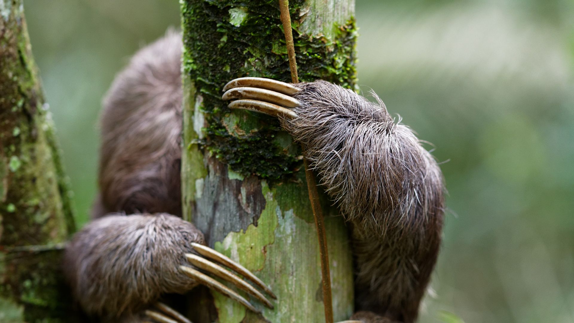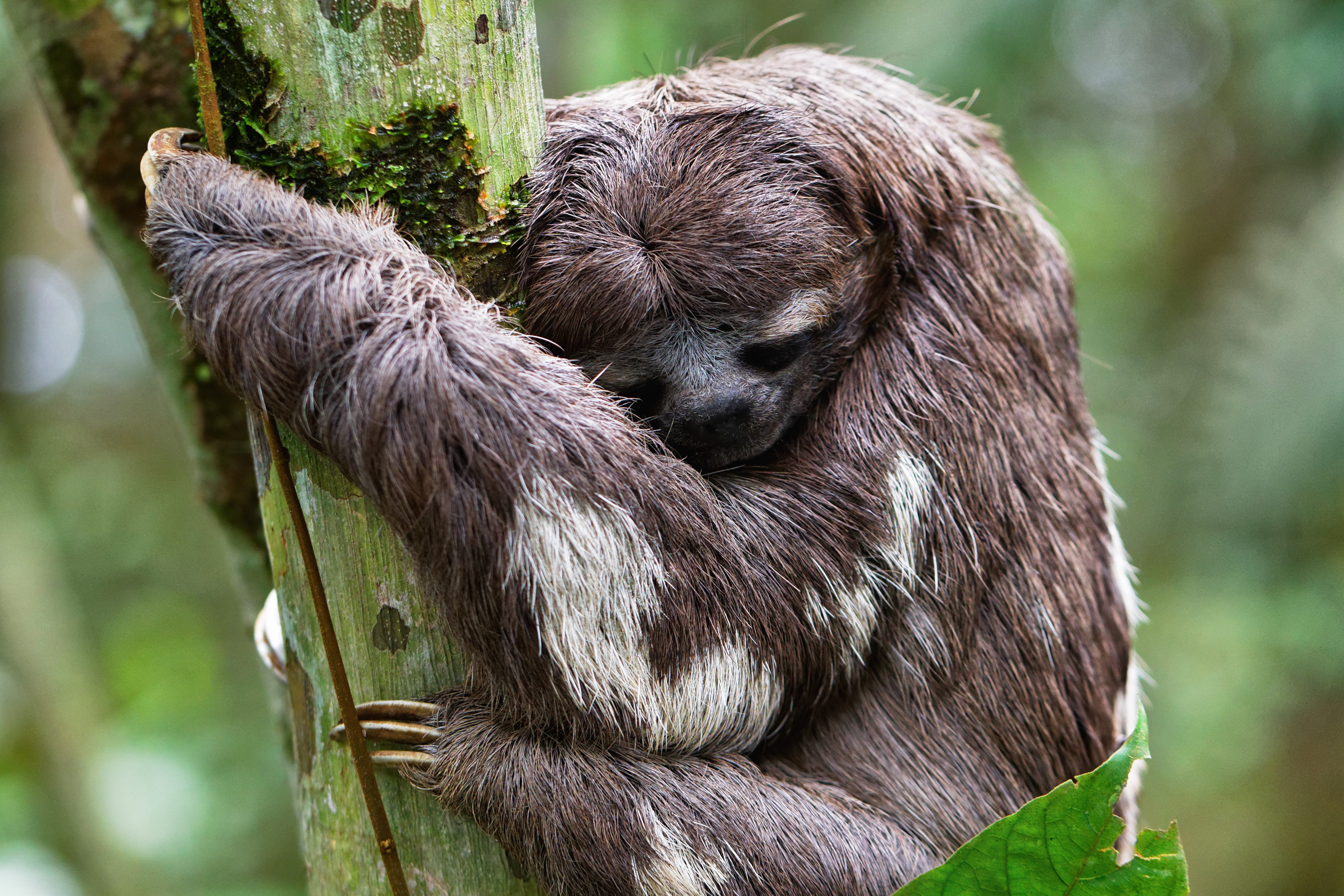 - Es sind nur noch ein paar Meter bis in das sichere Blätterdach, aber das kleine Faultier macht erst einmal eine Pause.