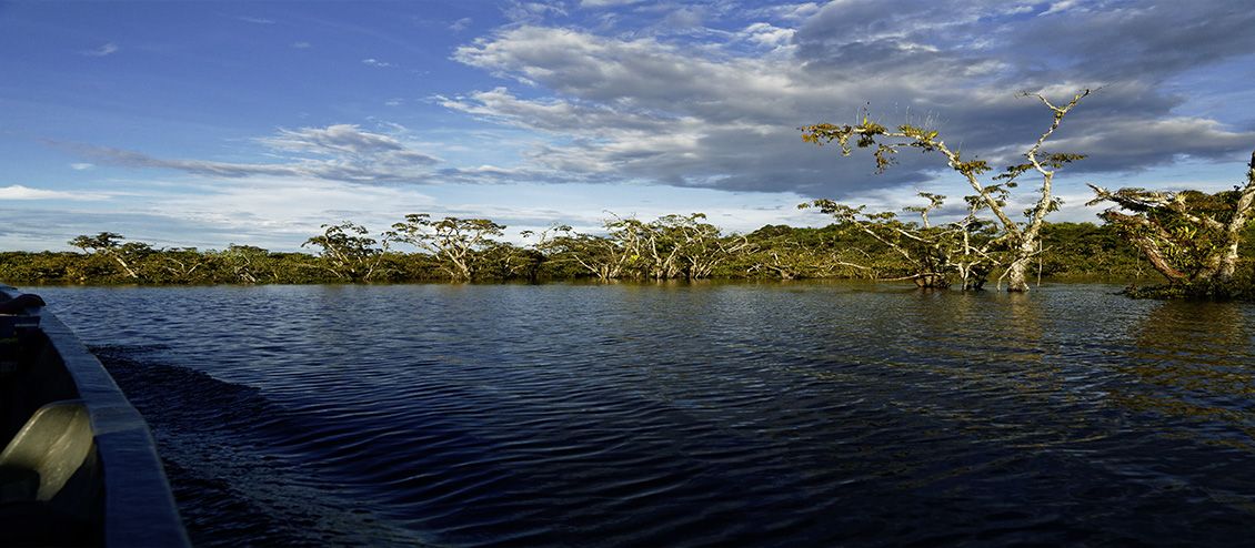 - Gespannt fahren wir durch das Schwemmland des Cuyabeno, ein Labyrint von unzähligen Wasserstrassen.