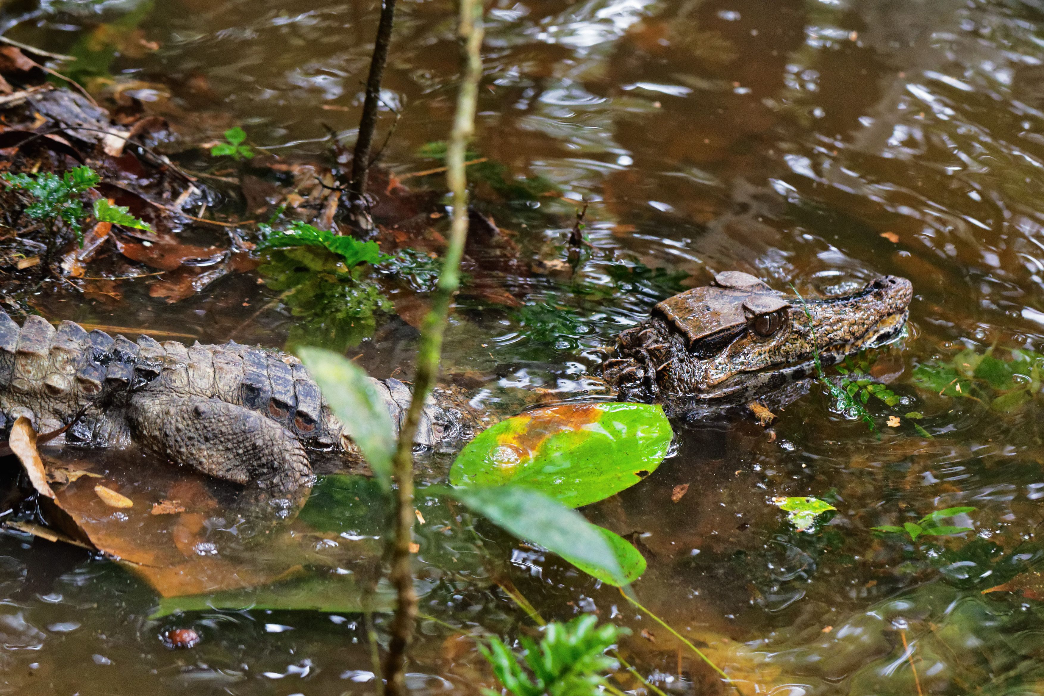 Als wir an der Lodge ankommen, liegen dort bereits zwei weitere Kanus. Beladen mit vielen Kisten und Menschen in Uniform. Wir erfahren, dass die Ranger kurz davor sind, beschlagnahmte oder aufgezogene und gepflegte Kaimane, Schildkröten, Faultiere und Schlangen auszuwildern, also wieder in die Obhut des Dschungels zu übergeben. Der Colonel bietet uns an, bei diesem Ereignis dabei zu sein und natürlich ist das geplante Bier damit vergessen und wir springen ins Kanu! Anny vergisst sogar, dass sie nur Flip Flops anhat. Aufgeregt folgen wir den Rangern und erreichen die Stelle unserer Nachtwanderung.