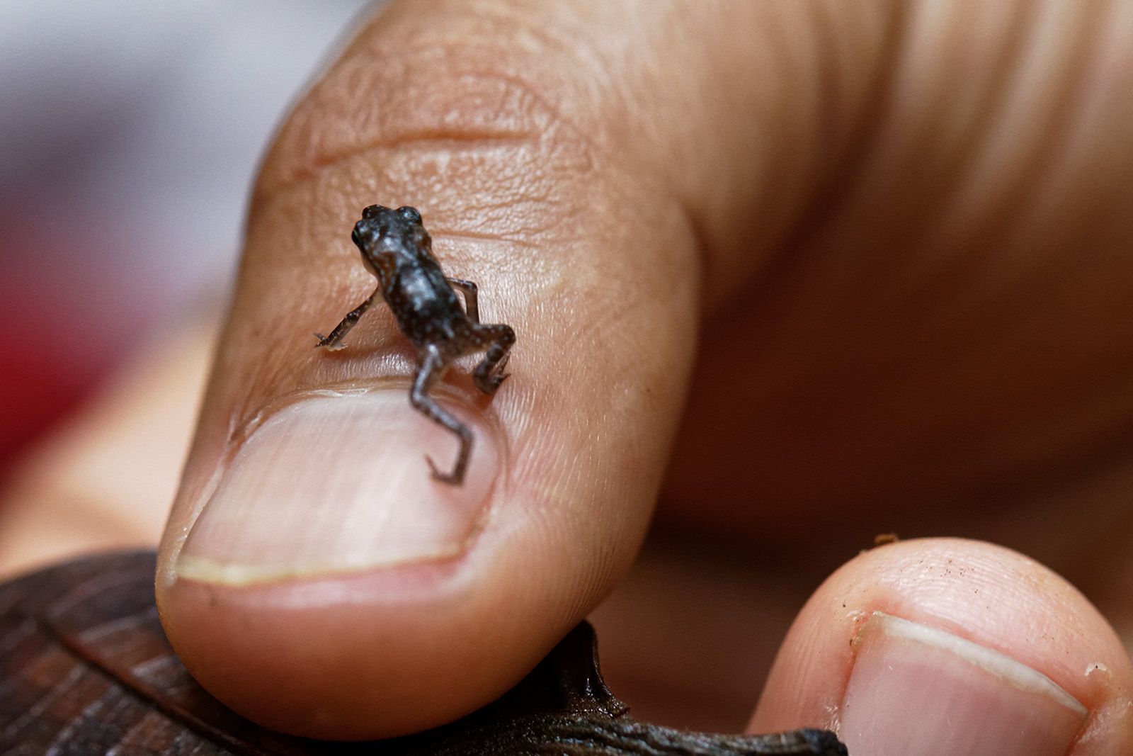 Ein Highlight ist ein Falter mit durchsichtigen Schwingen, ein daumennagelgroßer Frosch und sog. "Bullet- Ants", 24-Stunden-Ameisen oder auch Tropische Riesenameisen genannt. Die Ameisen können einem schmerzhafte Bisse zufügen, mit denen man tagelang zu kämpfen hat. Und damit wir auch welche sehen können, piekst Gilver mit einem Stöckchen in einem Loch am Boden herum und innerhalb von Sekunden rasen eine Handvoll Tiere der vermeintlichen Gefahr entgegen.