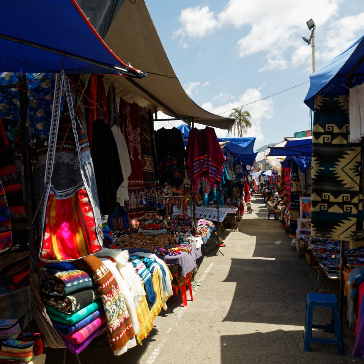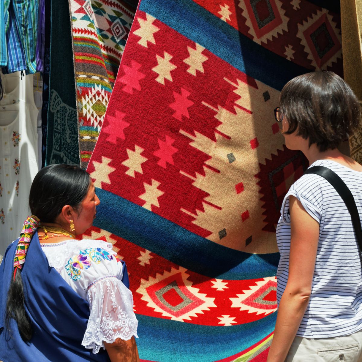 - Einheimische preisen ihre Waren an und feilschen gerne über ihr traditionelles Gewerke in Form von Ketten, Decken, Ponchos, Schnitzereien und Metallwaren.