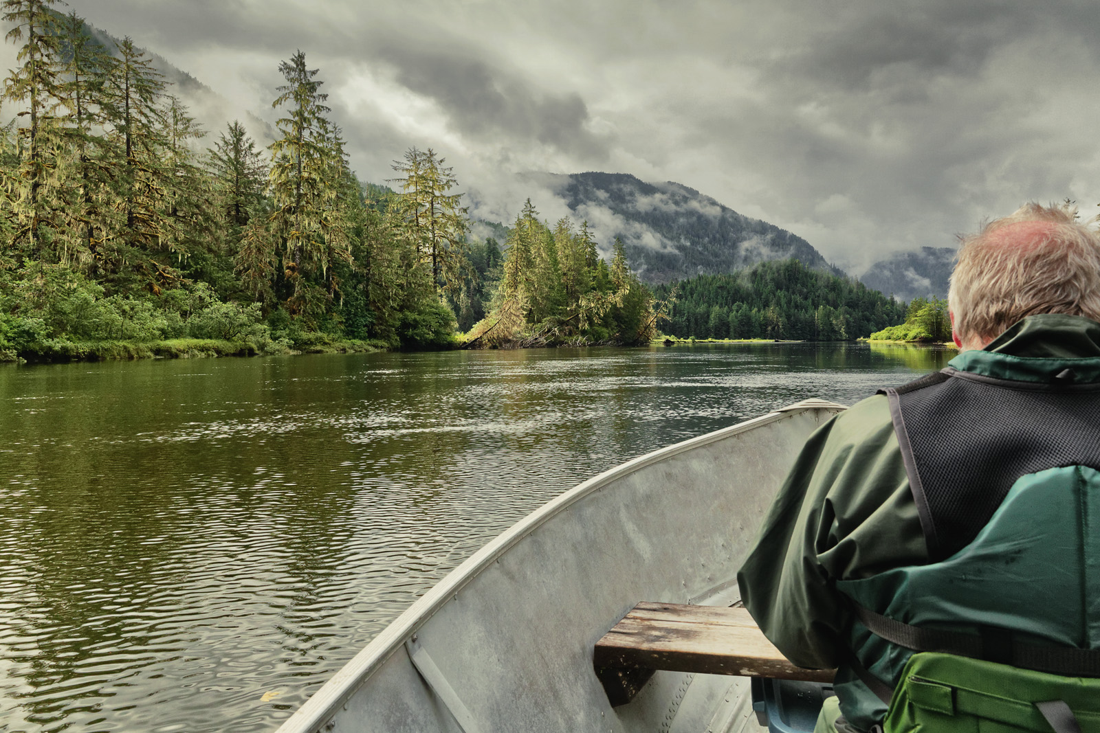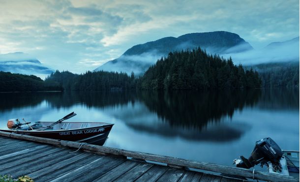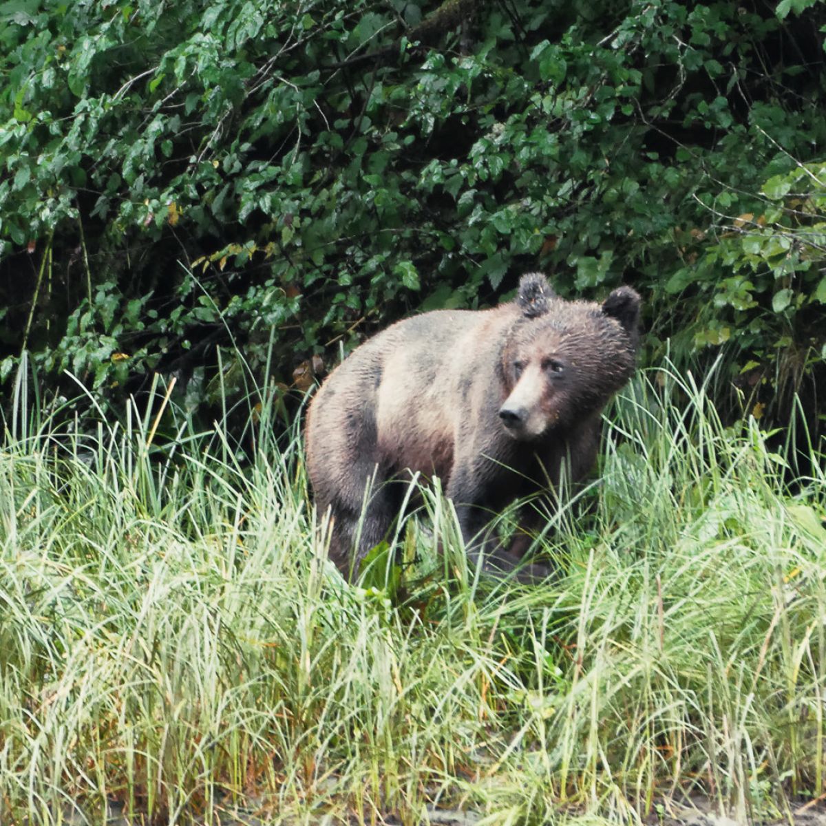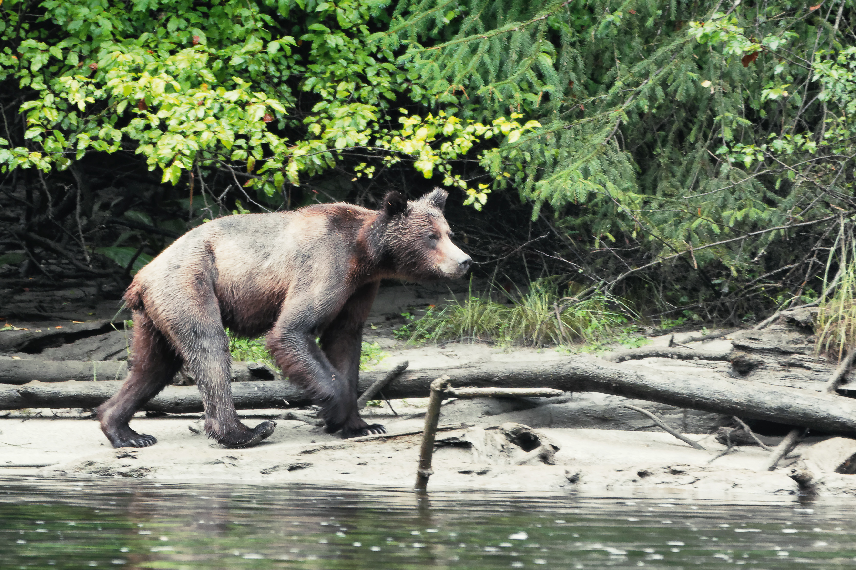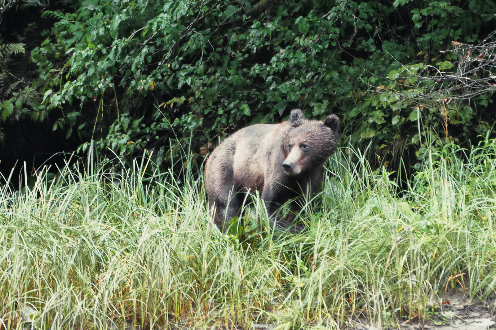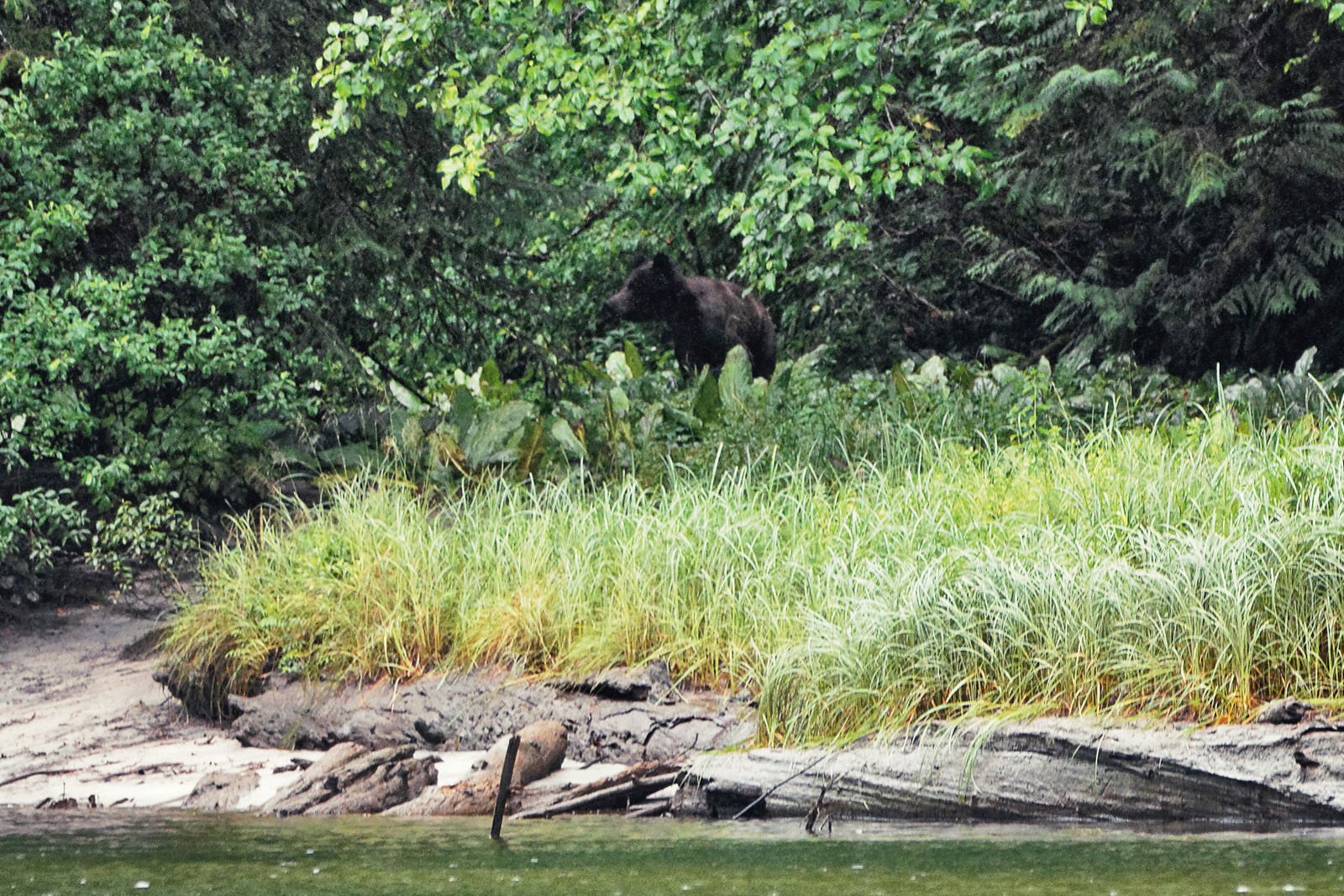 Douglaskiefern und Sitka-Fichten bewalden die Bergkämme und Ufer am Smith Inlet, wo wir dem Boot zu den Bären fahren wollen. Das schwimmende Hotel wird von der Australierin Marg Leehane und ihrem kanadischen Mann Tom Rivest, einem Grizzly-Experten und Umweltschützer gemeinsam geführt.