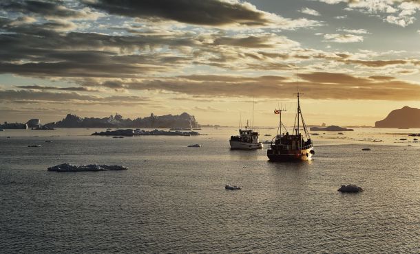 3) Auch im Sommer kann der Hafen zufrieren. Zuviel Treibeis kann sich derart verkeilen, dass man einen Eisbrecher benötigt.