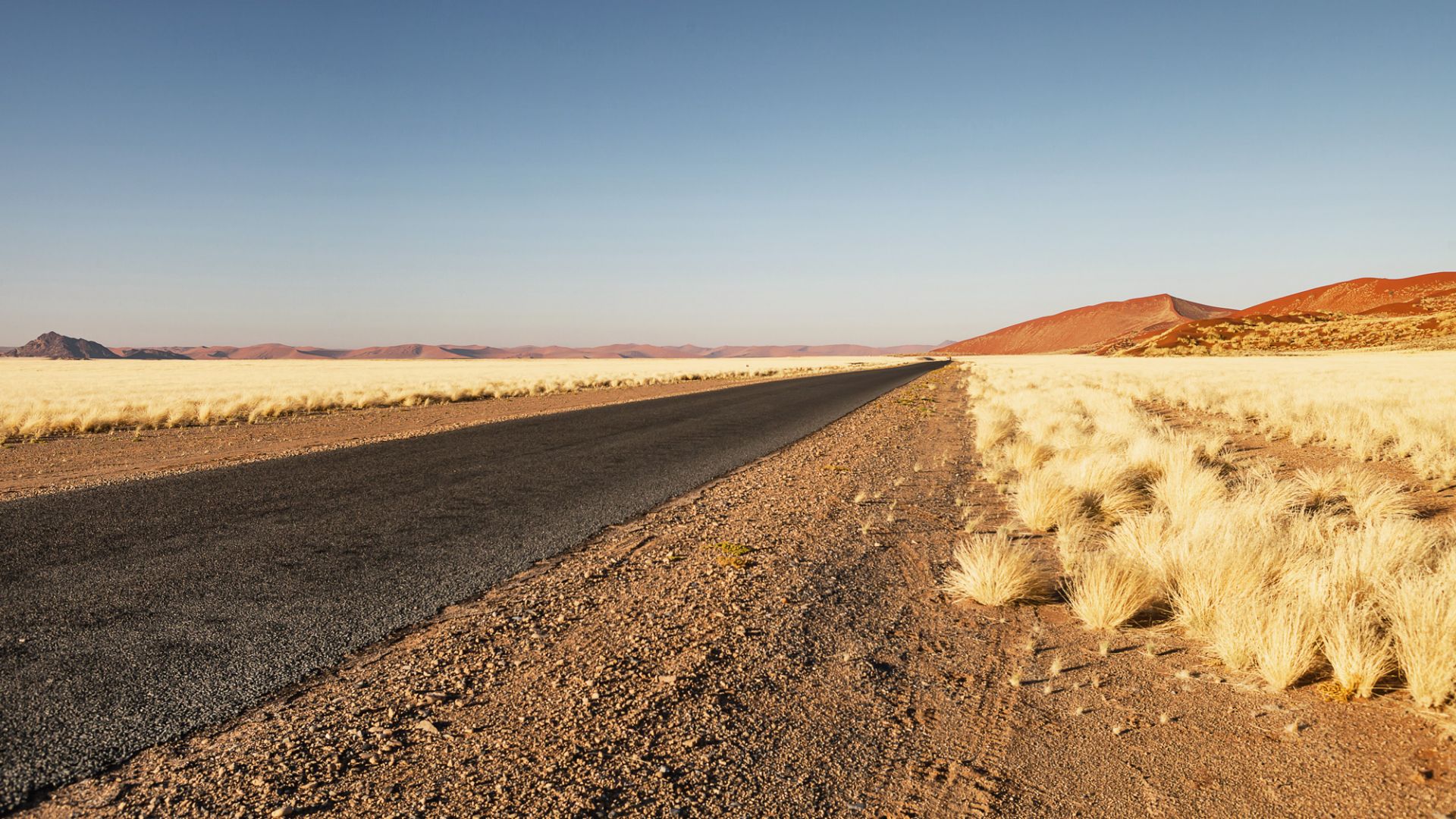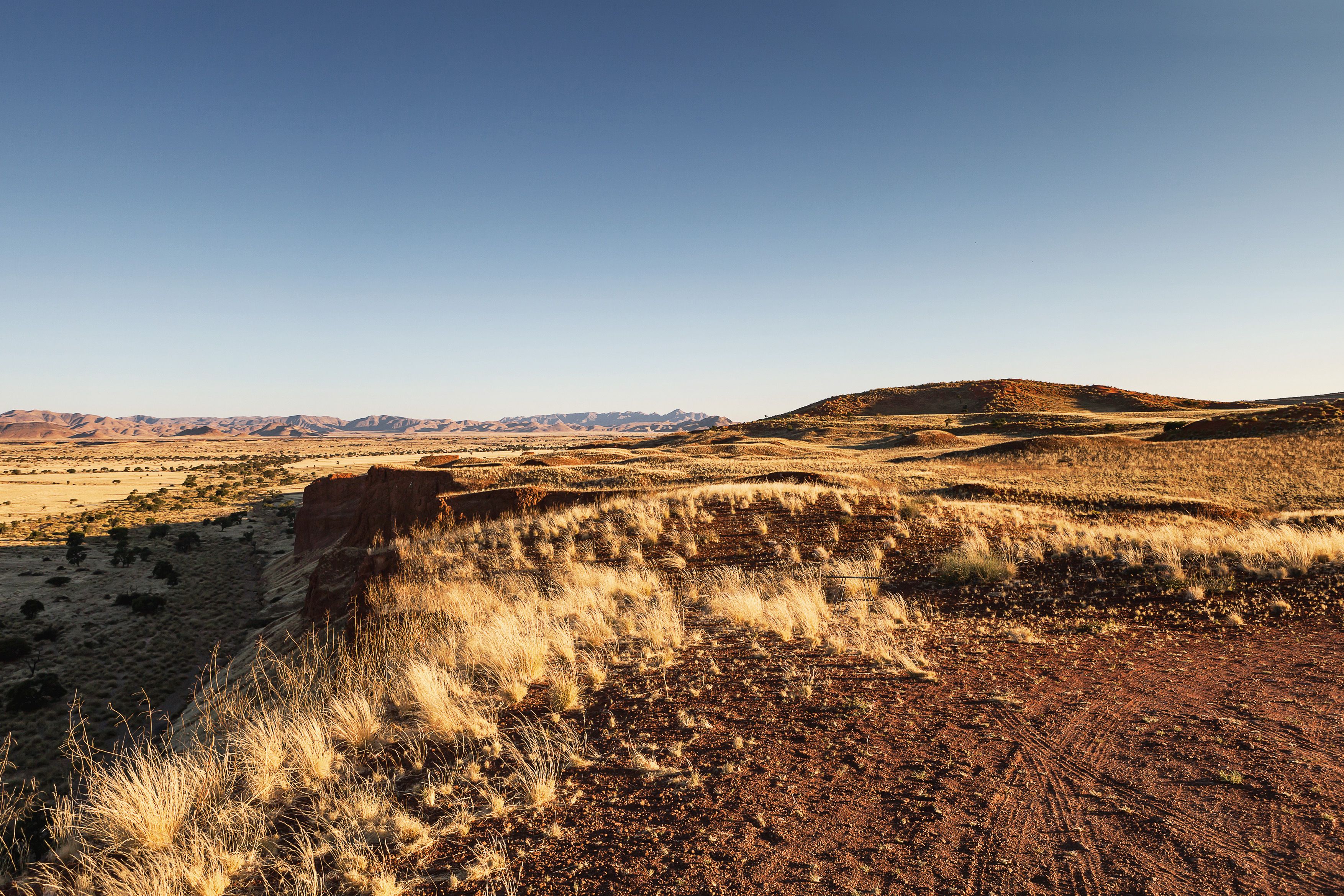 Die sandigen Fahrwege schneiden sich mit roten Linien durch das gelbe Gras. Ein leichter Wind schaukelt die Halme, Staub glitzert im Licht und die leichte Briese macht den späten Nachmittag unter der Sonne sehr angenehm. Langsam fahren wir durch ein Labyrinth von Wegen durch das Gelände der versteinerten Dünen.