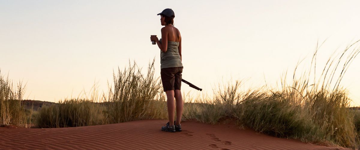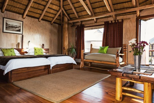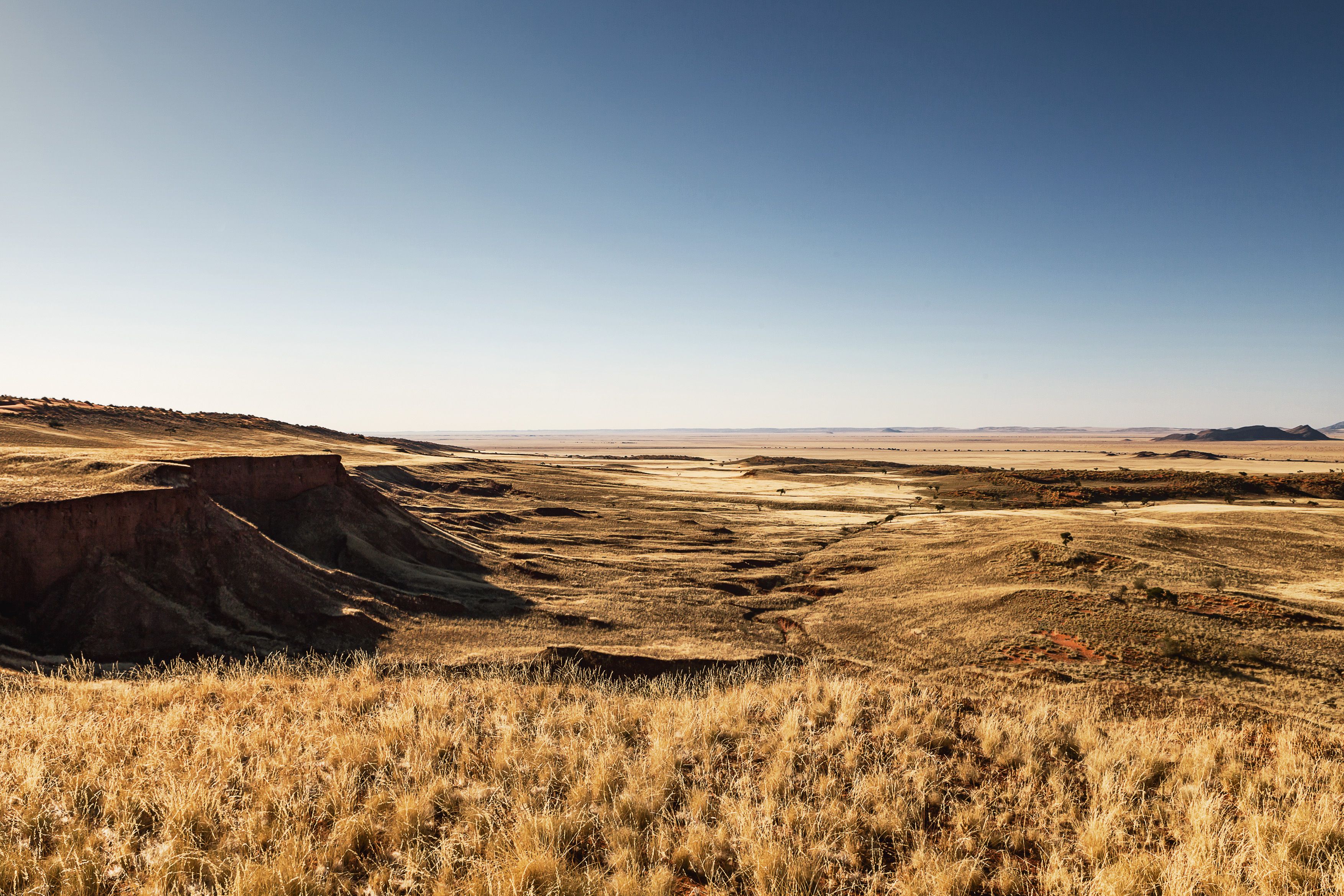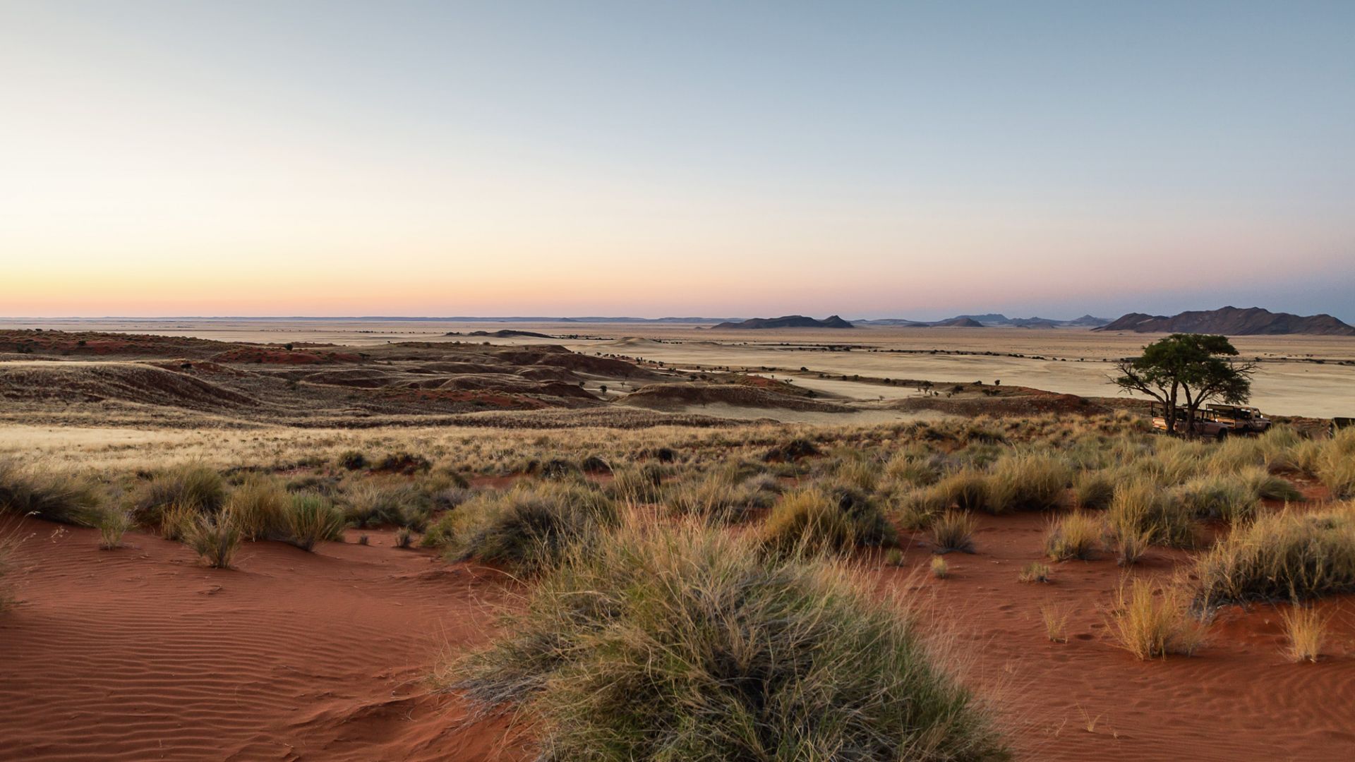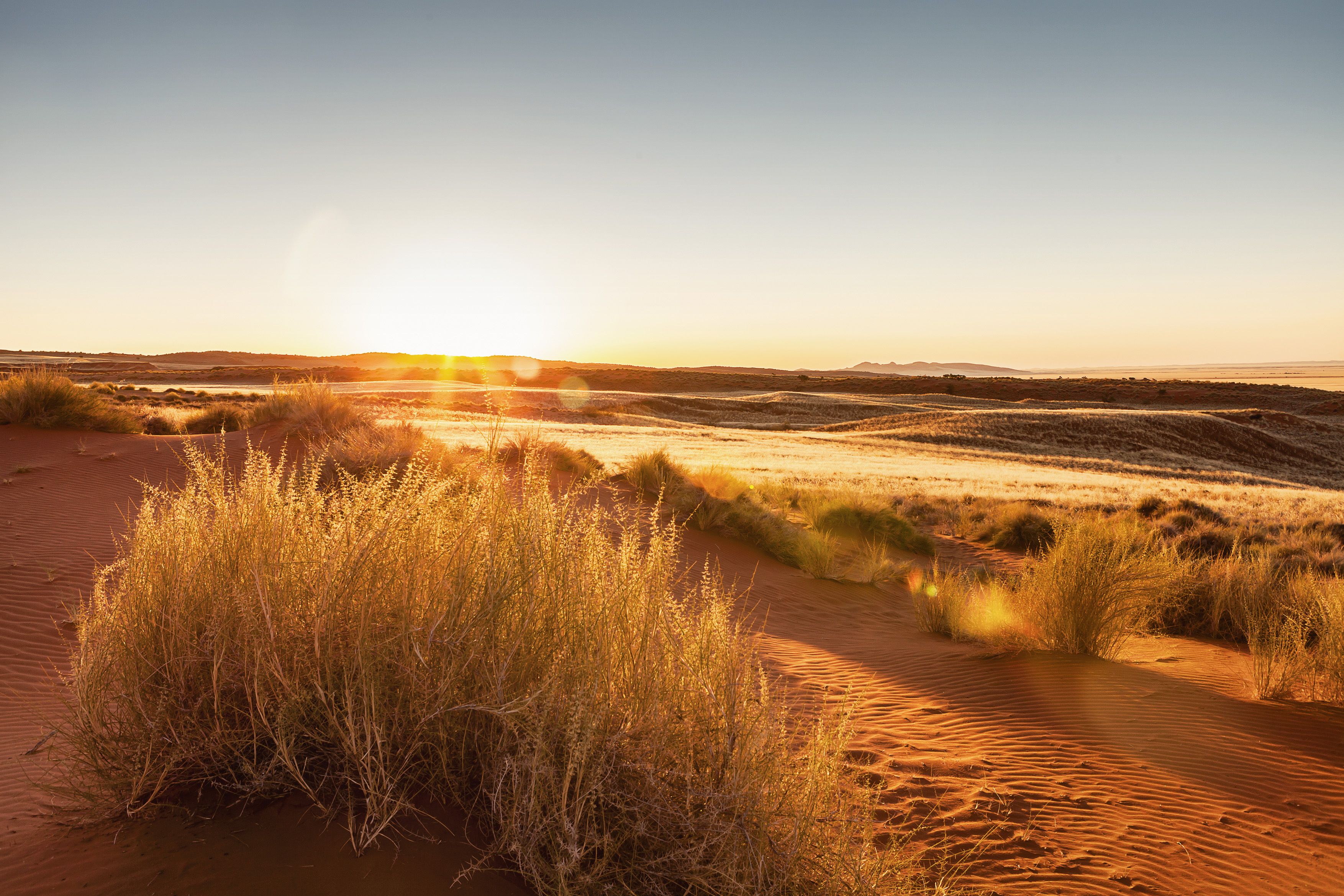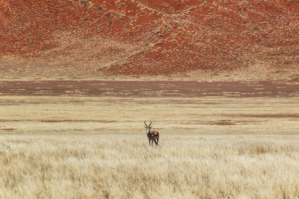 Am Nachmittag erreichen wir die Namib Desert Lodge, unmittelbar unterhalb einer Klippe von versteinerten Sanddünen. Wir wollen uns gleich für den Scenic Drive am frühen Abend anmelden, erfahren dann aber, dass die Tour schon komplett ausgebucht sei. Etwas betrübt beziehen wir unseren Bungalow, mit kleiner Terrasse und fantastischem Blick auf die roten Klippen.