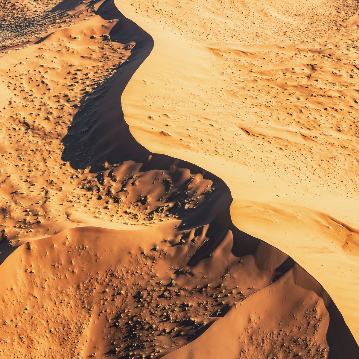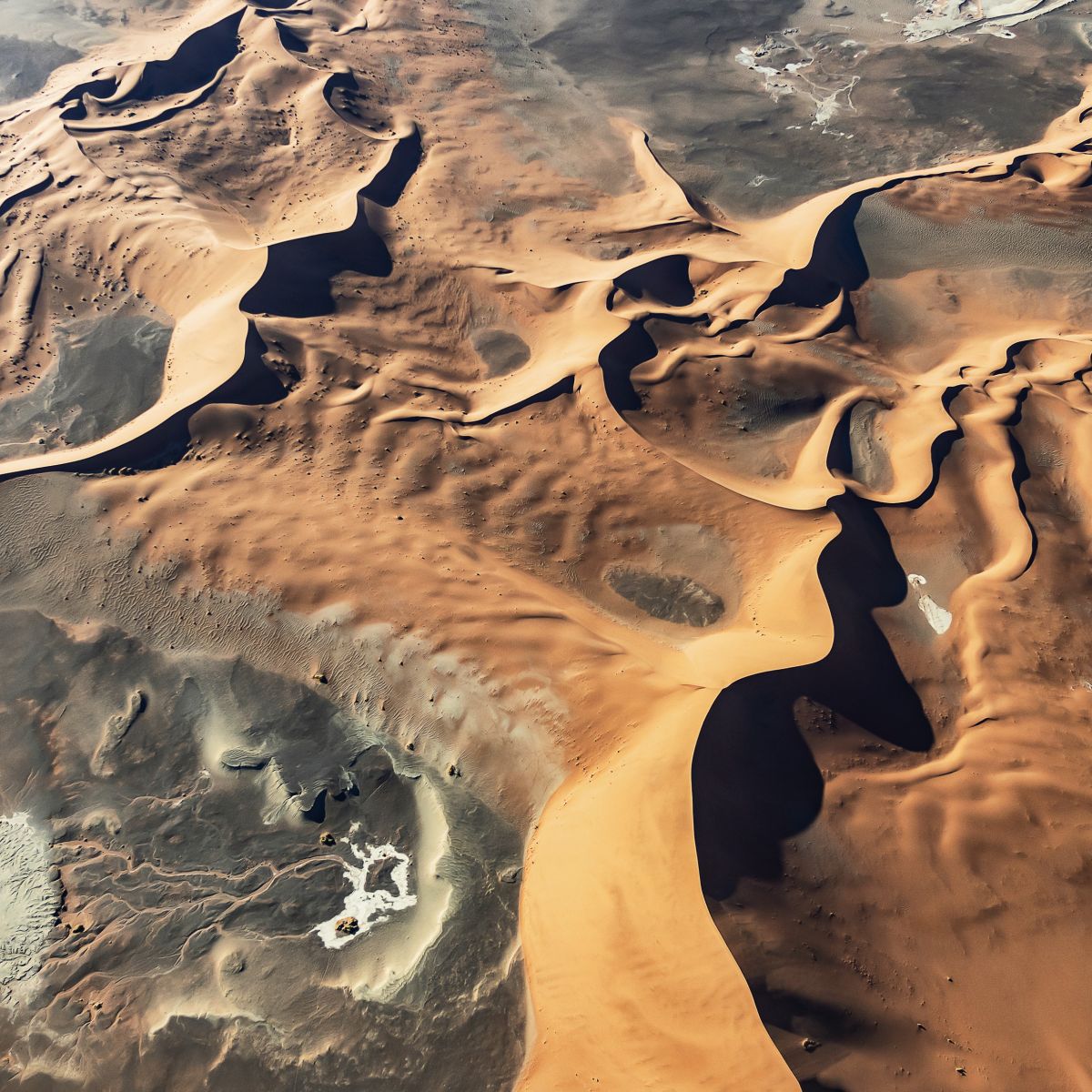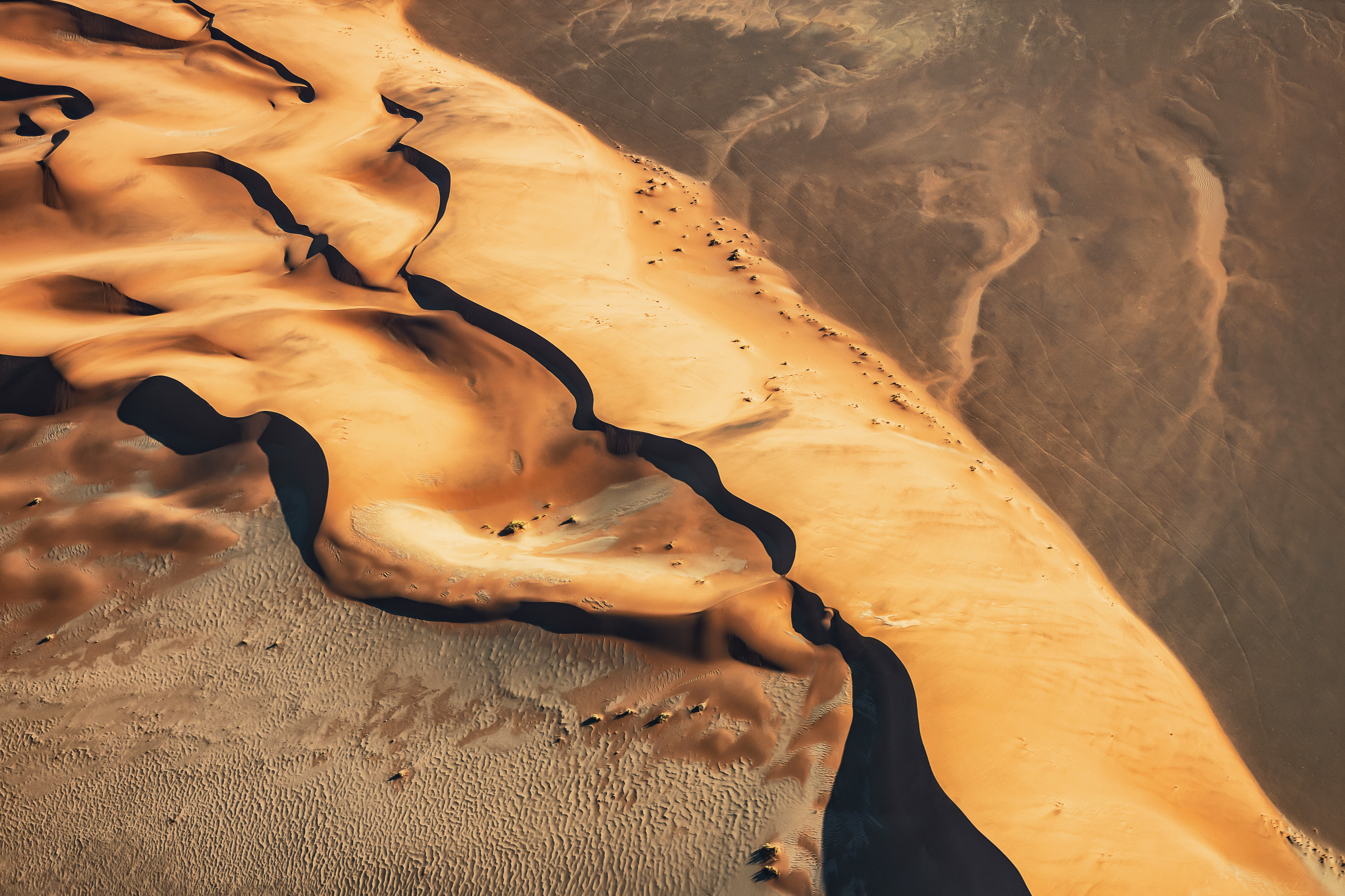 An Düne 45 hält uns doch tatsächlich ein Ranger an und fragt uns, ob wir mit einer Drohne fliegen. Tun wir nicht, verweisen auf Teile der Fotoausrüstung, ernten ein knappes 'OK' und werden dann durchgewunken. Klingt irgendwie zu einfach um wahr zu sein … Wir beobachten am Fuße der Düne, wie sich eine handvoll Touristen durch den schweren Sand über den Grat nach oben kämpfen, um auf 80–150 Metern all ihrer Kräfte entraubt, atemlos die Aussicht zu genießen.
