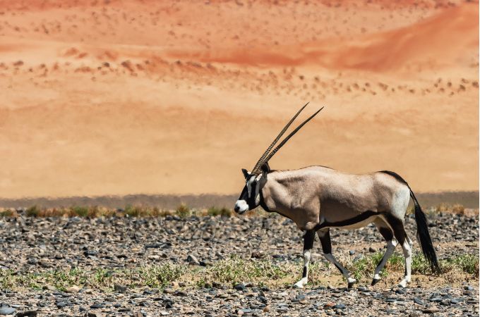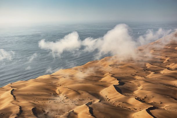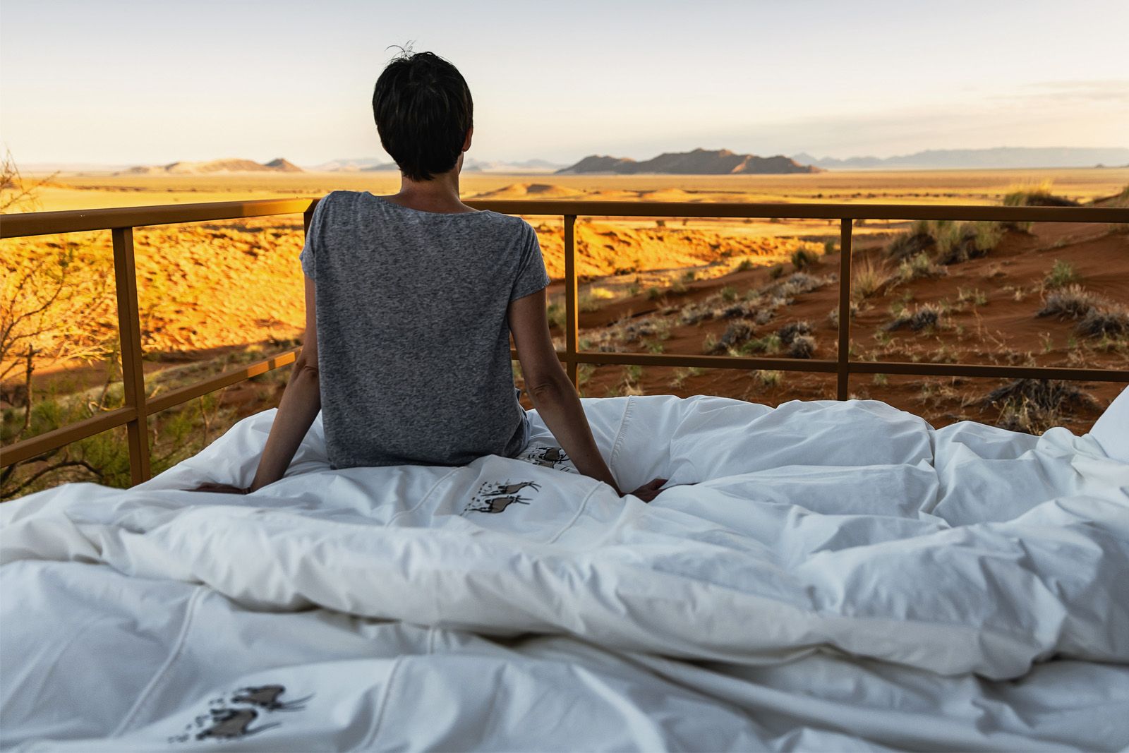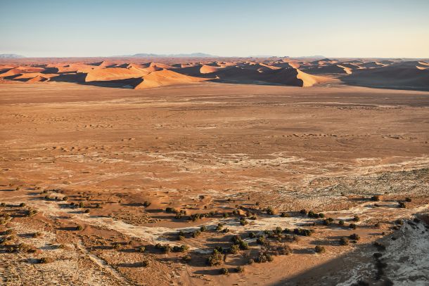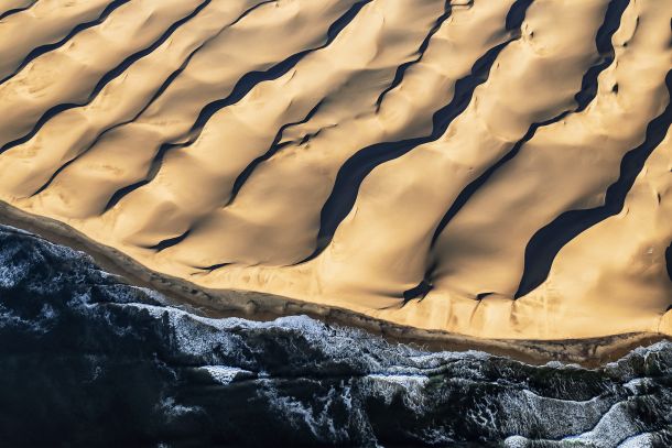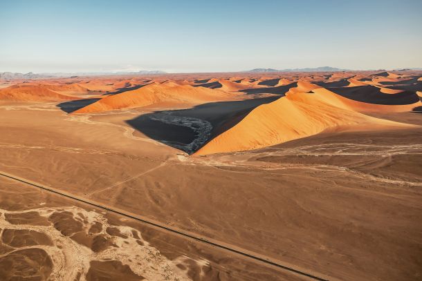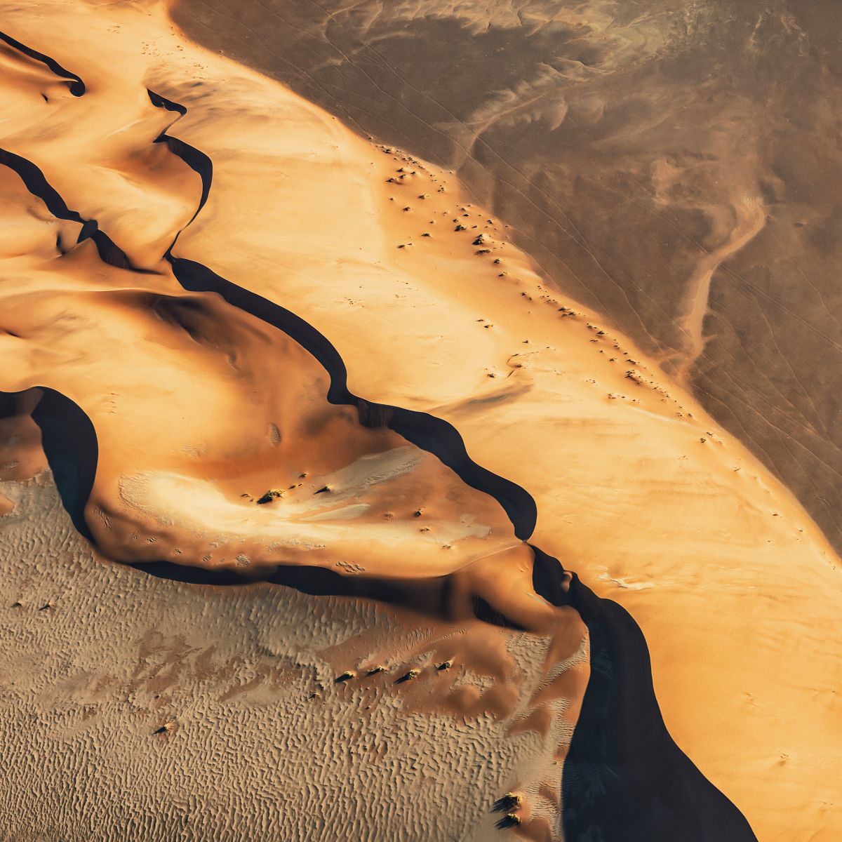 An Düne 45 hält uns doch tatsächlich ein Ranger an und fragt uns, ob wir mit einer Drohne fliegen. Tun wir nicht, verweisen auf Teile der Fotoausrüstung, ernten ein knappes 'OK' und werden dann durchgewunken. Klingt irgendwie zu einfach um wahr zu sein … Wir beobachten am Fuße der Düne, wie sich eine handvoll Touristen durch den schweren Sand über den Grat nach oben kämpfen, um auf 80–150 Metern all ihrer Kräfte entraubt, atemlos die Aussicht zu genießen.