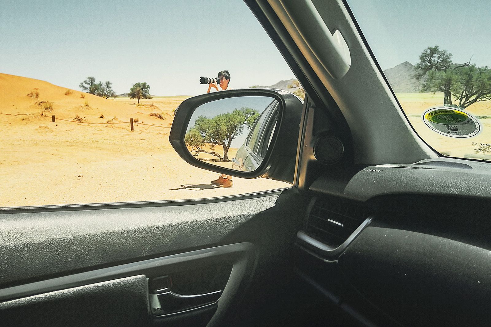 Langsam legen wir die knapp 60 km zum Sossusvlei zurück und da das Wetter nicht aufmacht, beschließen wir einen kurzen Schlummi im Auto zu machen. Nach kurzer Pause machen wir uns auf den Rückweg, denn das Licht ist einfach zu schlecht. Wir waren vor ein paar Jahren schon mal am Sossusvlei und am Deadvlei und entscheiden, dass wir den Luxus haben, diese Etappe zu überspringen.