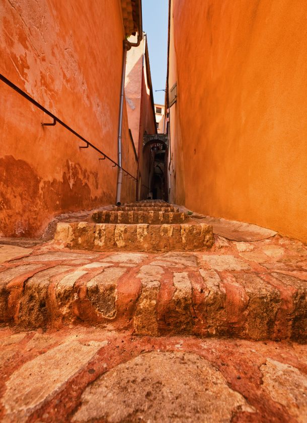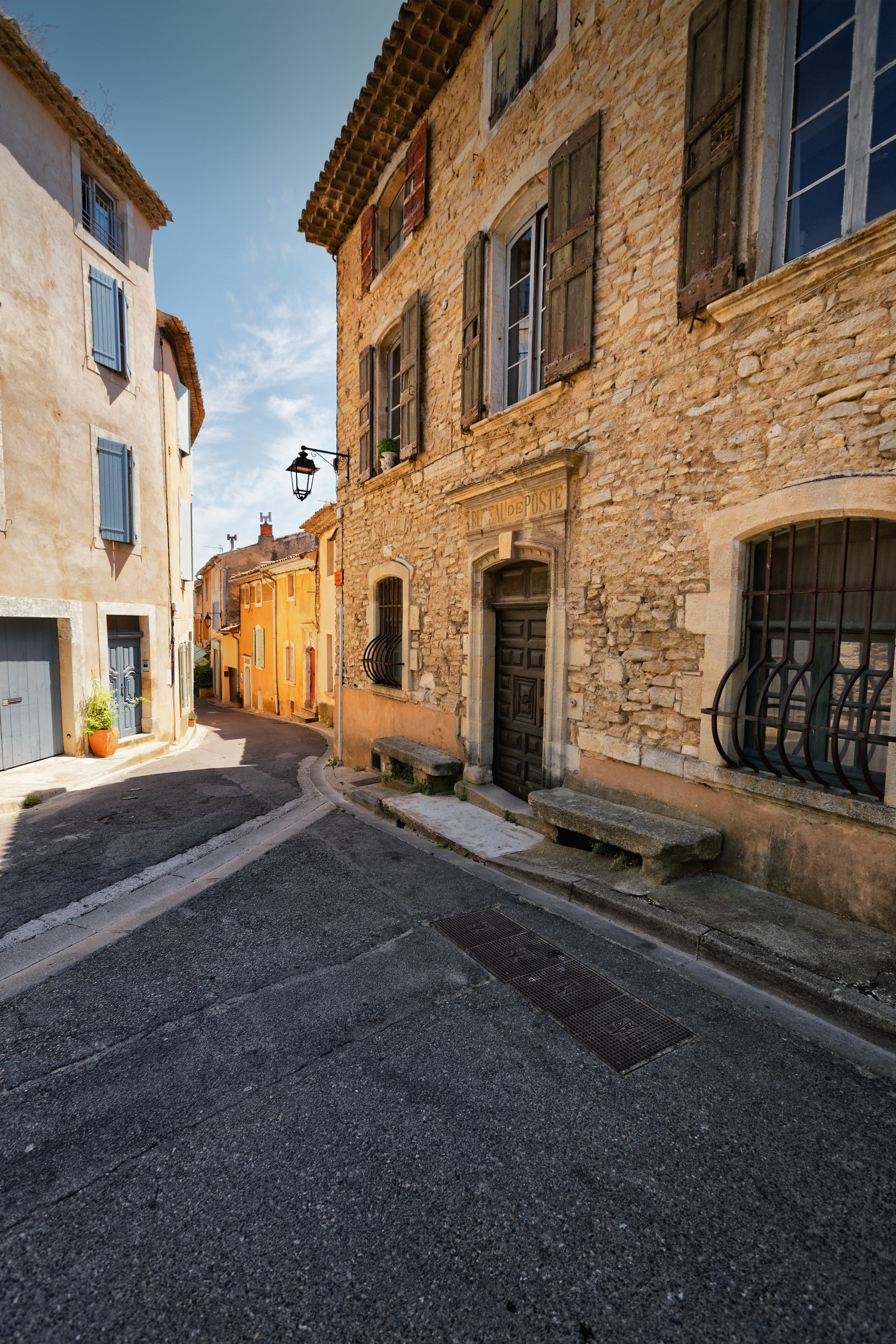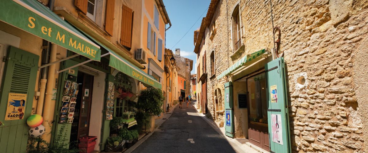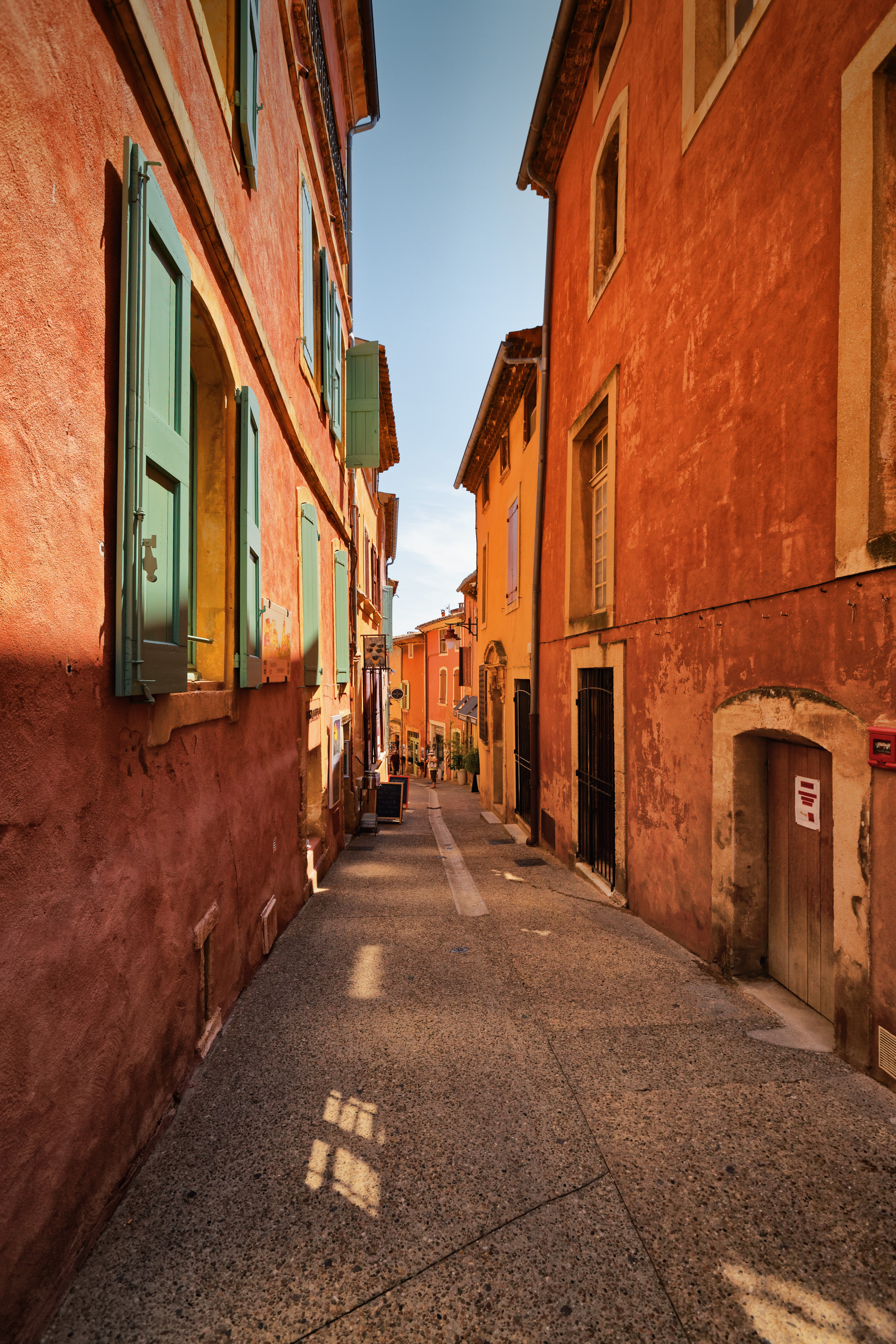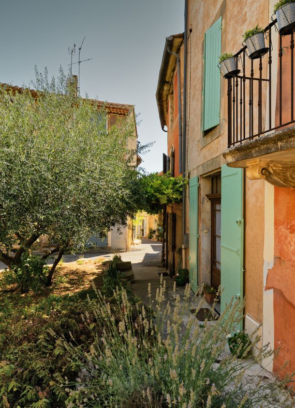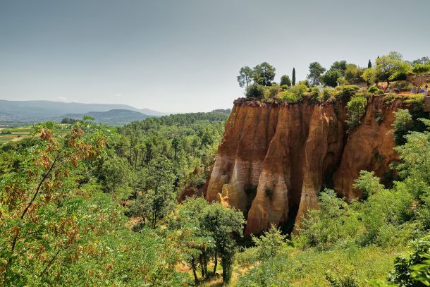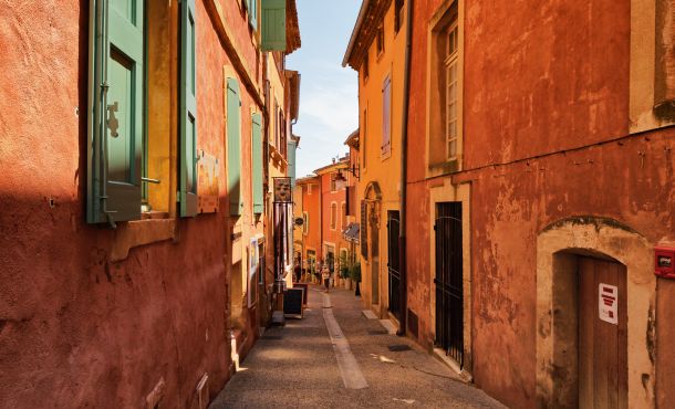 Die Mädels holen zum Frühstück Baguette, Pain au Chocolat, Croissants und lecker Brioches und wir beschließen auf unserer kleinen Dachterrasse zu speisen, da hier weniger Mücken sind. Die Luft ist jetzt schon heiß aber klar und es ist kaum eine Wolke zu sehen. Wir beschließen nach Roussillon zu fahren und die Gegend zu erkunden. Die südfranzösische Gemeinde im Département Vaucluse mit knapp 1300 Einwohnern liegt am Fuße des Luberon-Massivs und ist als eines der Plus beaux villages de France (schönste Dörfer Frankreichs) klassifiziert, welches mitten im Regionalen Naturpark Luberon liegt. Unter der Hitze der Südsonne laufen wir durch die engen Gassen und freuen uns über jeden Schatten, den wir finden können.