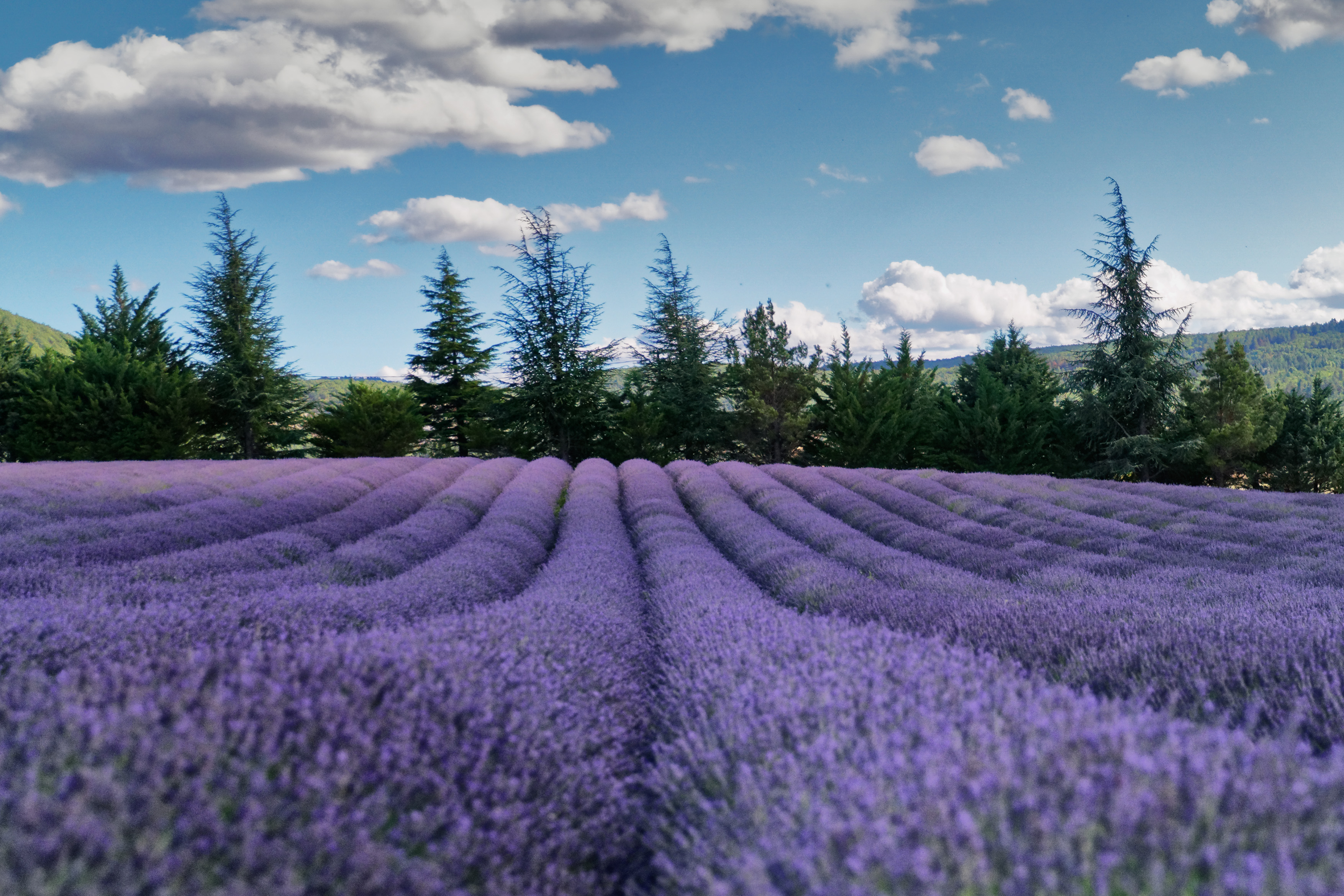 Aufgeregt schnappen wir unsere Kameras und vergessen die Zeit, während wir die ordentlich angelegten Reihen von Lavendelsträuchern auf und ab laufen.