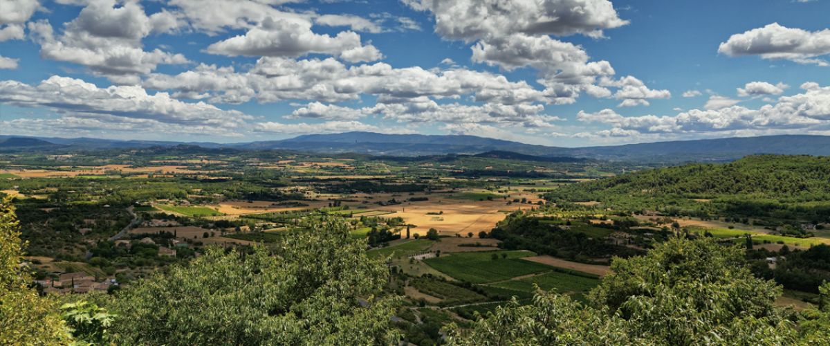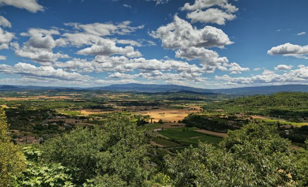 Wie auf einer Insel thront der Ort auf einer Erhebung und wir genießen einen fantastischen Weitblick in die Ebene des Luberon.