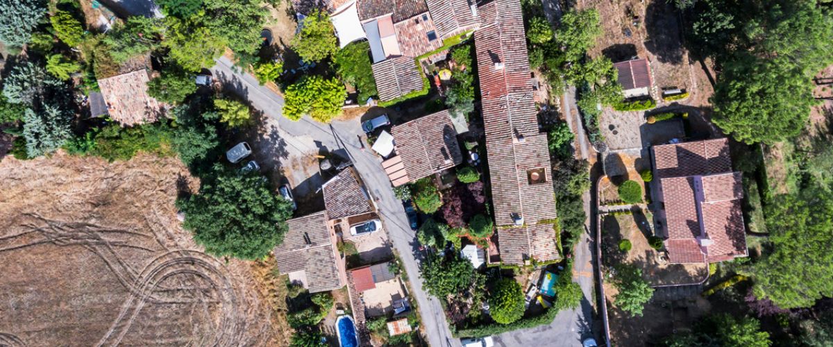 Nördlich von Sault entdecken wir ein Feld mit Blick auf die in den Hang geschmiegte Siedlung von Aurel.
