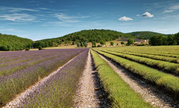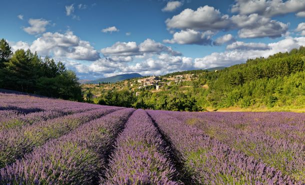 Wir treten den Rückzug an und beschließen unsere Vorräte aufzufrischen und wieder in Richtung Sault zu fahren. In der Nähe von Banon bleiben wir in einem kleinen, offenen Tal hängen, in dem größere Teppiche violett in der Sonne schimmern. Tatsächlich Felder, die noch in ihrer vollen Blüte stehen. Wir breiten erst einmal unsere Sachen für ein gediegenes Picknick aus und genießen beim Essen die Ruhe an diesem sonnigen Tag.