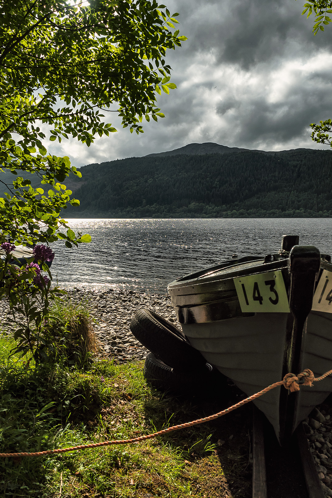 Das Wohnmobil ist geparkt, jetzt geht es erstmal zum See. Und hier kommen wir erstmals in Berührung mit den berühmten Midges. Die kleinen Mücken sind eine häufige Plage in den schottischen Highlands, kleine bissige Biester, die aber wirklich in jede Körperöffnung fliegen und am ganzen Körper kleine rote, juckende Stellen hinterlassen. Wir versuchen, die Dinger so gut es geht zu ignorieren.