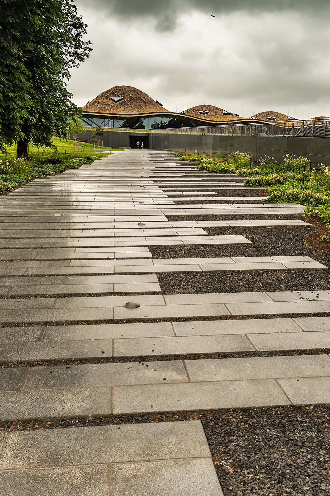 Wir sind auf dem Weg zu einem Campground am Fuße des Cairngorms Nationalpark, es ist schon relativ spät, als wir an der Scone Camping und Caravanning Club Site außerhalb von Perth ankommen. Leider gibt es keine freien 'hard standing pitches' mehr, nur noch 'grass pitches' zuhauf. Allerdings wollen uns die Besitzer nicht aufs Gras stellen, weil Regen angesagt ist und sie Angst haben, dass nach der langen Trockenheit unsere 3,5 Tonnen im Boden versinken. Es gibt noch einen Platz direkt vor der Toilette – zwar auch Gras, aber nahe genug am Weg, so dass man im Zweifel noch rausgezogen werden könnte.