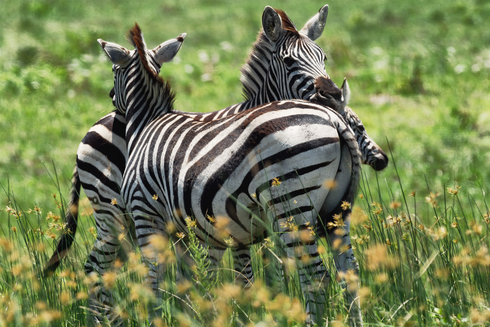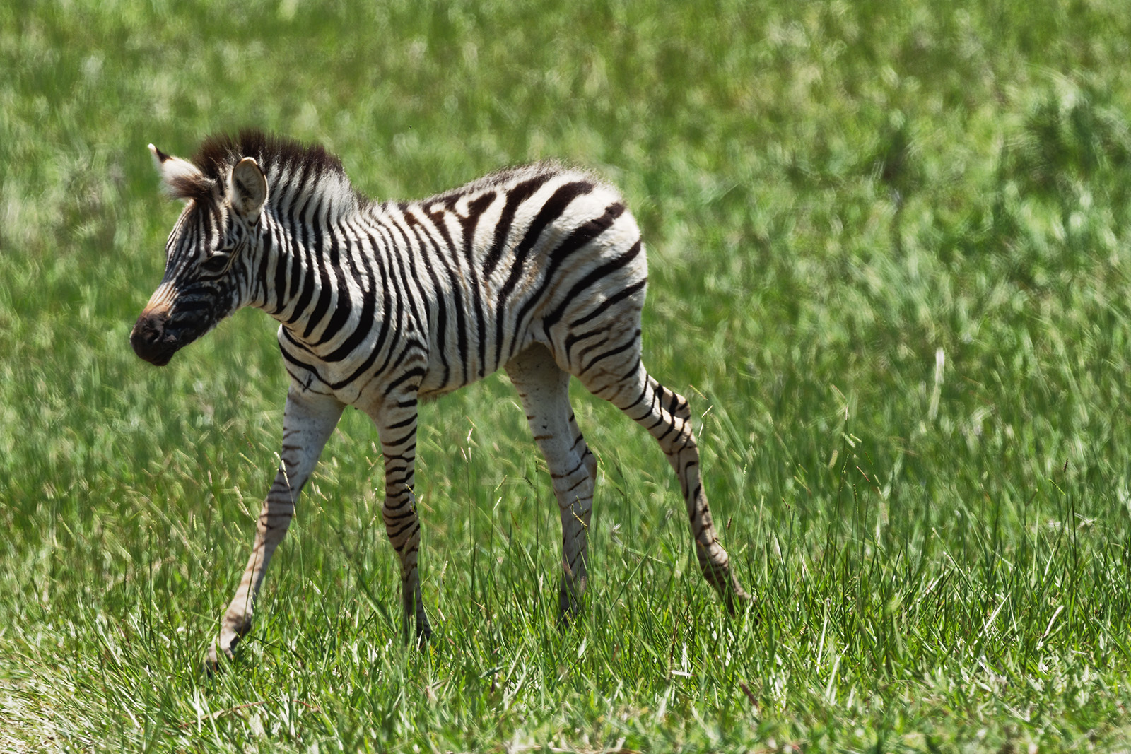 Wir durchqueren die westliche Seite des Parks, schauen Antilopen beim Grasen zu und beobachten zahlreiche Giraffenfamilien beim eleganten Vorbeischlendern. In einem Schlammloch dösen zwei pechschwarze Nashörner, davor rangeln zwei Giraffenbullen – was schon seltsam anmutet, wenn die Tiere versuchen, sich gegenseitig die kurzen Hörner mit weit ausholenden Hälsen in die Flanken zu rammen. Die erzielten Treffer sind sogar für den Zuschauer mit einem dumpfen 'Pock' hörbar! Bevor wir den Park verlassen, um auf der N2 nach Hluhluwe zu fahren, bleiben wir an einer kleinen Gruppe Zebras mit Nachwuchs hängen und freuen uns, wie die Tiere langsam durch die glitzernden Gräser ziehen.